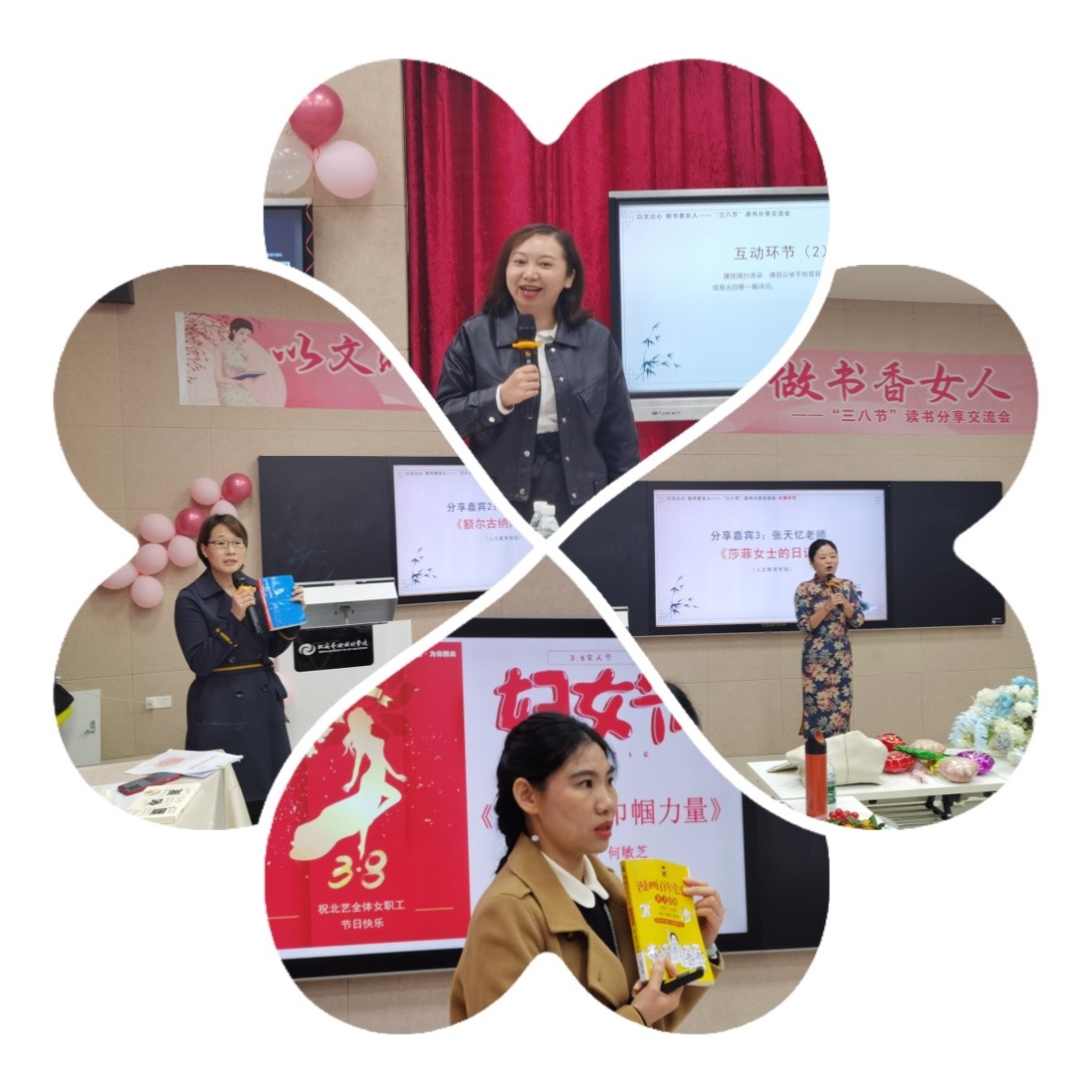 值此“三八”国际妇女节来临之际,为增添节日气氛,弘扬女性精神,展示巾帼风采,烘托读书氛围,校工会联合图书馆举办了"三八"妇女节读书分享交流活动。