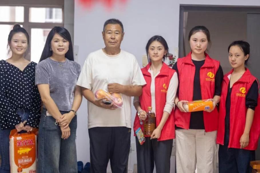 10月10日下午,由舞蹈学院党支部书记宋慧敏老师和舞蹈学院分团委书记史晓菲老师带领的志愿团队,携带着捐赠物资来到了橄榄苑社区,志愿者们拜访了居住在这里的老人们,与他们亲密交谈,并且送上节日祝福和礼物。
