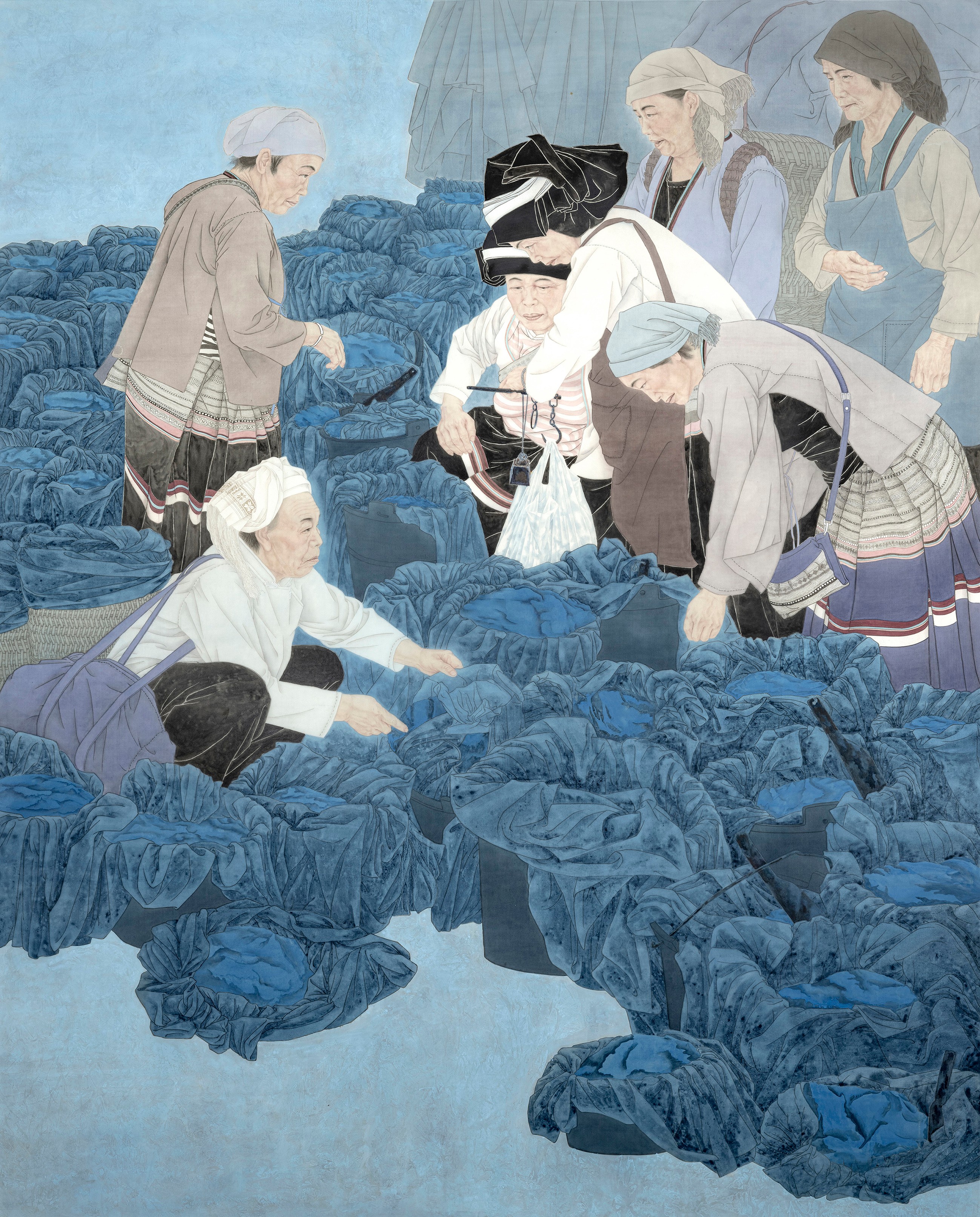 《德峨赶圩之蓝靛集市》186x230cm 绢本
