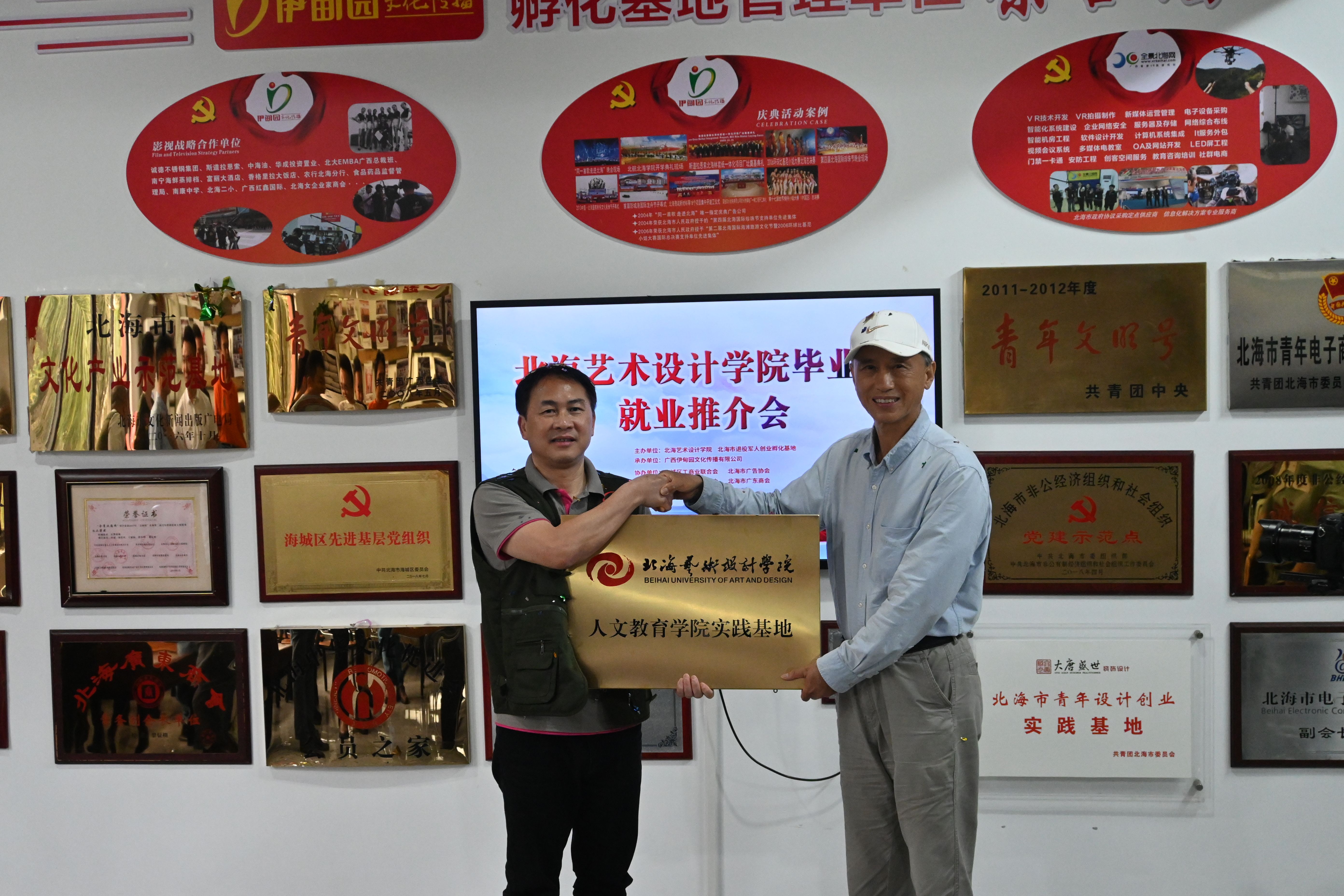 北海市退役军人创业孵化基地、钦州市退役军人创业孵化基地广西伊甸园文化传播有限公司创始人黎钲楠对卢新华校长和北海艺术设计学院的相关负责人的到来表示热烈欢迎。他主张校企之间应尽力留住在北海成长的人才,为北海的长期发展作出应有贡献。
