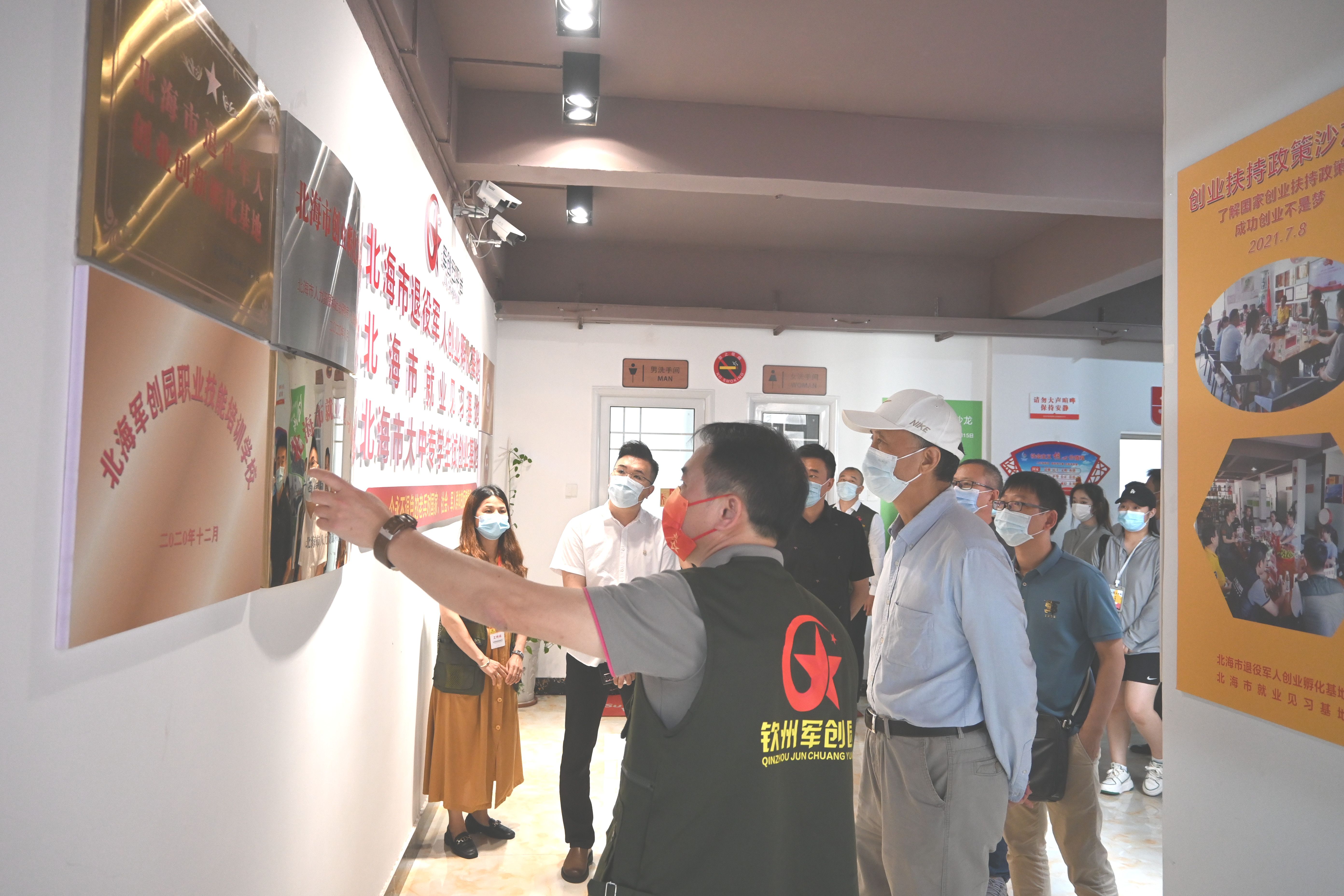 2022年5月13日下午,我校校长卢新华,副校长王斌、陶立阳、邱杰以及招生就业处、教务处、学工办、创新创业学院等部门代表赴北海市退役军人创业孵化基地参与人文教育学院举办的毕业生就业推介会。