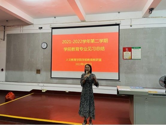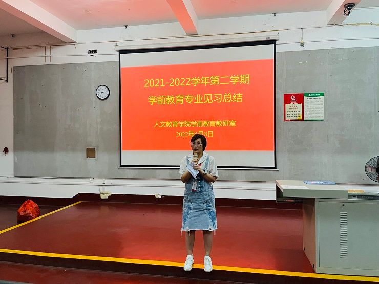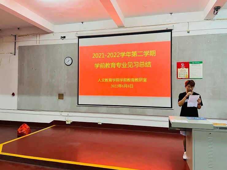 教育见习结束后学前教育教研室于6月8日晚组织学生召开2021-2022学年第二学期学前教育专业见习总结会。总结会上学生代表台发言本次教育见习的所感所思所获进行演讲。冯小霞老师总结本次教育见习中同学们表现的优点及不足勉励同学们在下一次教育见习中继续发扬优势改正不足争取更大的进步。最后蒙剑英老师对本次见习工作进行点评,对后面学生们学习提出希望。希望同学们总结经验善于自省以每一次的教育见习为成长的阶梯一步步踏出成长的步伐。(照片:学前教育教研室