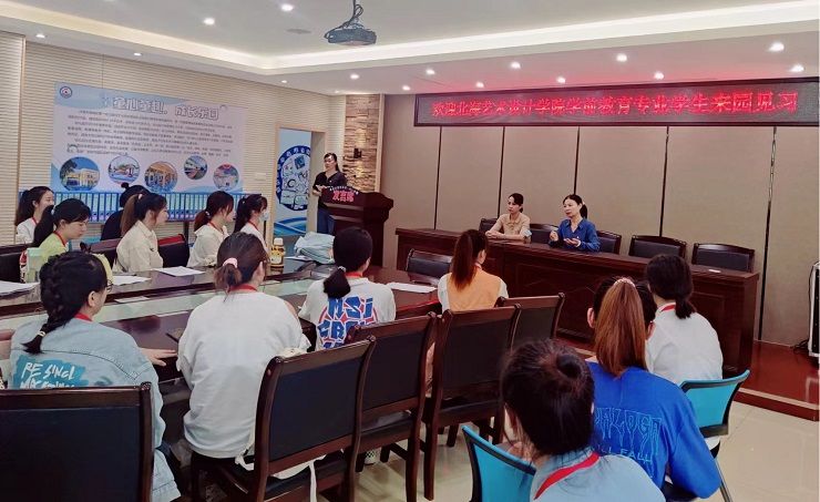 银海区第二幼儿园刘园长给见习生们介绍幼儿园情况(学前1902班)
