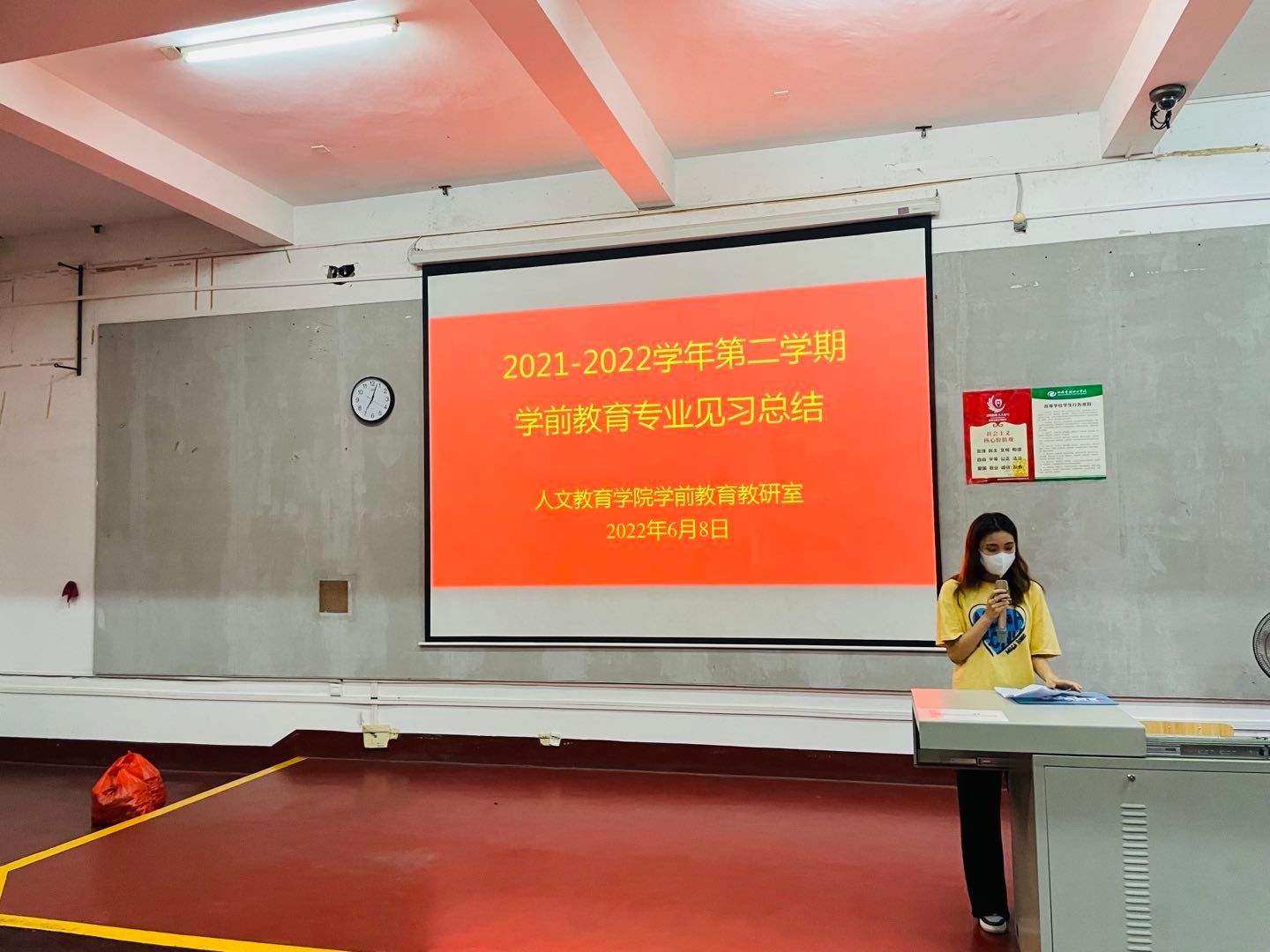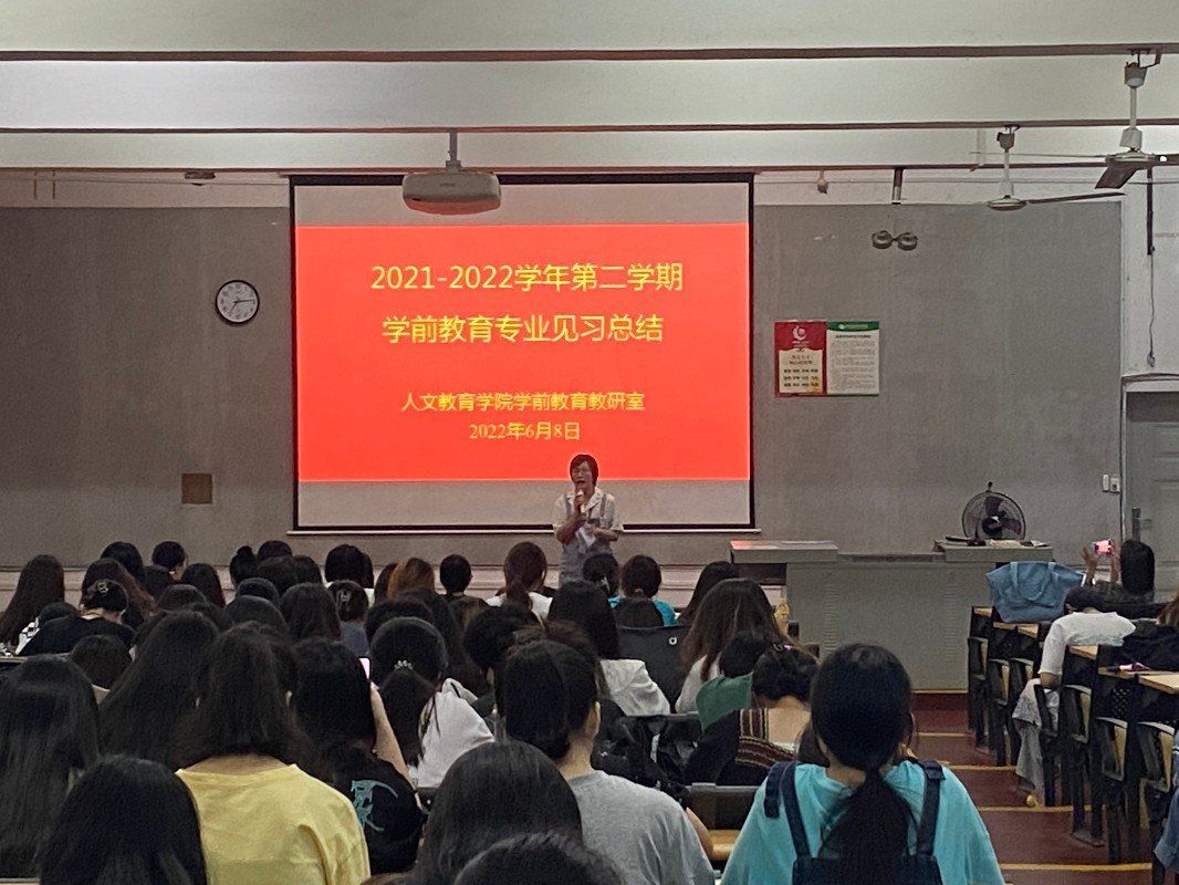 教育见习结束后,学前教育教研室于6月8日晚组织学生召开2021-2022学年第二学期学前教育专业见习总结会。总结会上,学前2002学生乔阳代表全体教育见习同学发言,乔阳同学围绕本次教育见习谈了收获和体会。冯小霞老师对本次教育见习进行总结肯定了同学们表现指出不足,勉励同学们改正不足,争取更大的进步。学前教育教研室副主任蒙剑英老师发表讲话,希望同学们针对本次教育见习认真做好总结,对标合格幼儿教师,查找差距,完善自身,争取早日以合格幼儿教师的身份在走上岗位 (照片:学前教研室