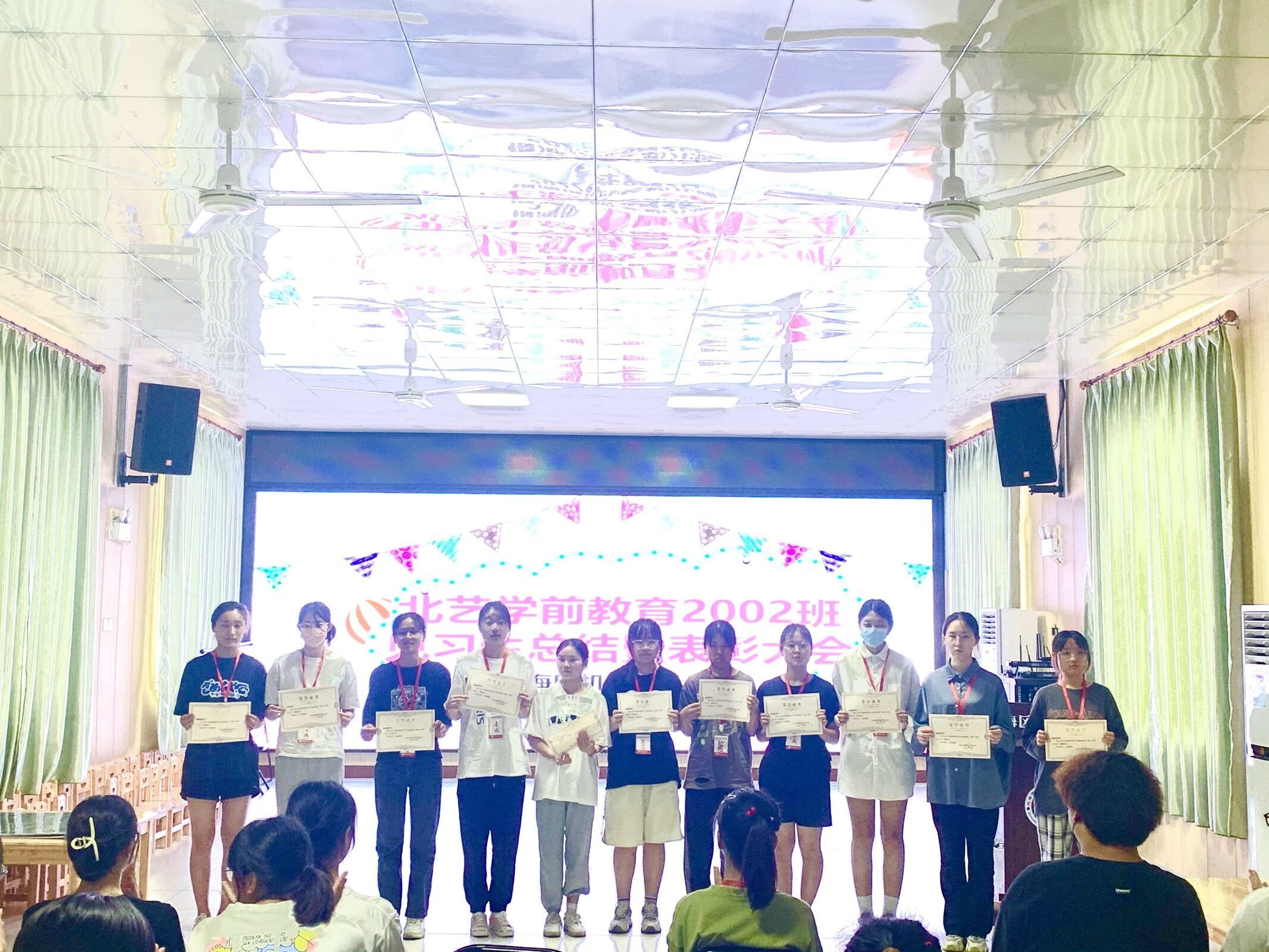 见习活动的最后一天,学校与园方一同为见习生们举行了教育见习表彰大会。会上,幼儿园园长祝贺见习生们为期两周的教育见习取得圆满成功。随后,幼儿园小、中、大班级长分别为见习生们播放了见习期间的精彩照片并作发言,回顾了各位见习生在班里见习时的优秀表现。各位见习生也踊跃发言,分享了自己在见习期间的所见所闻及心得体会。最后,为本次教育见习的优秀见习生举行了颁奖仪式,肯定他们在见习期间的优秀表现,并为其他见习生树立了学习榜样。