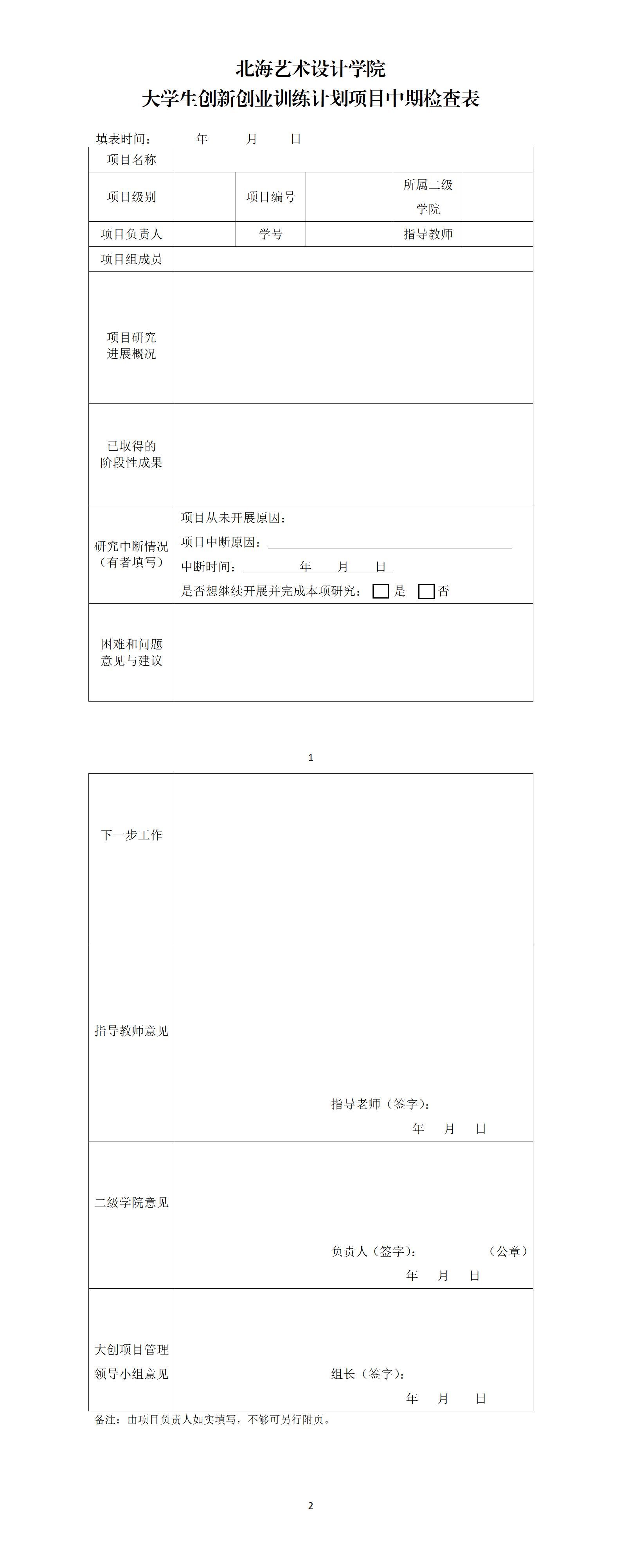 中期检查表