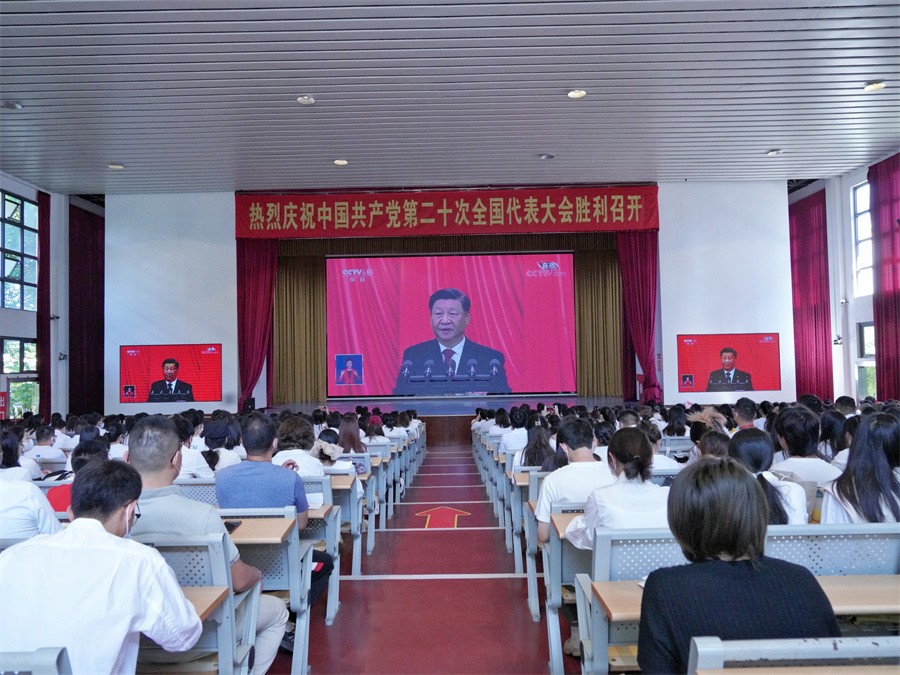 学校组织师生收听收看党的二十大开幕会