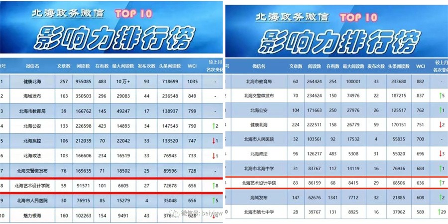 学校登上北海市2022年6、9月新媒体政务微信影响力排行榜第八