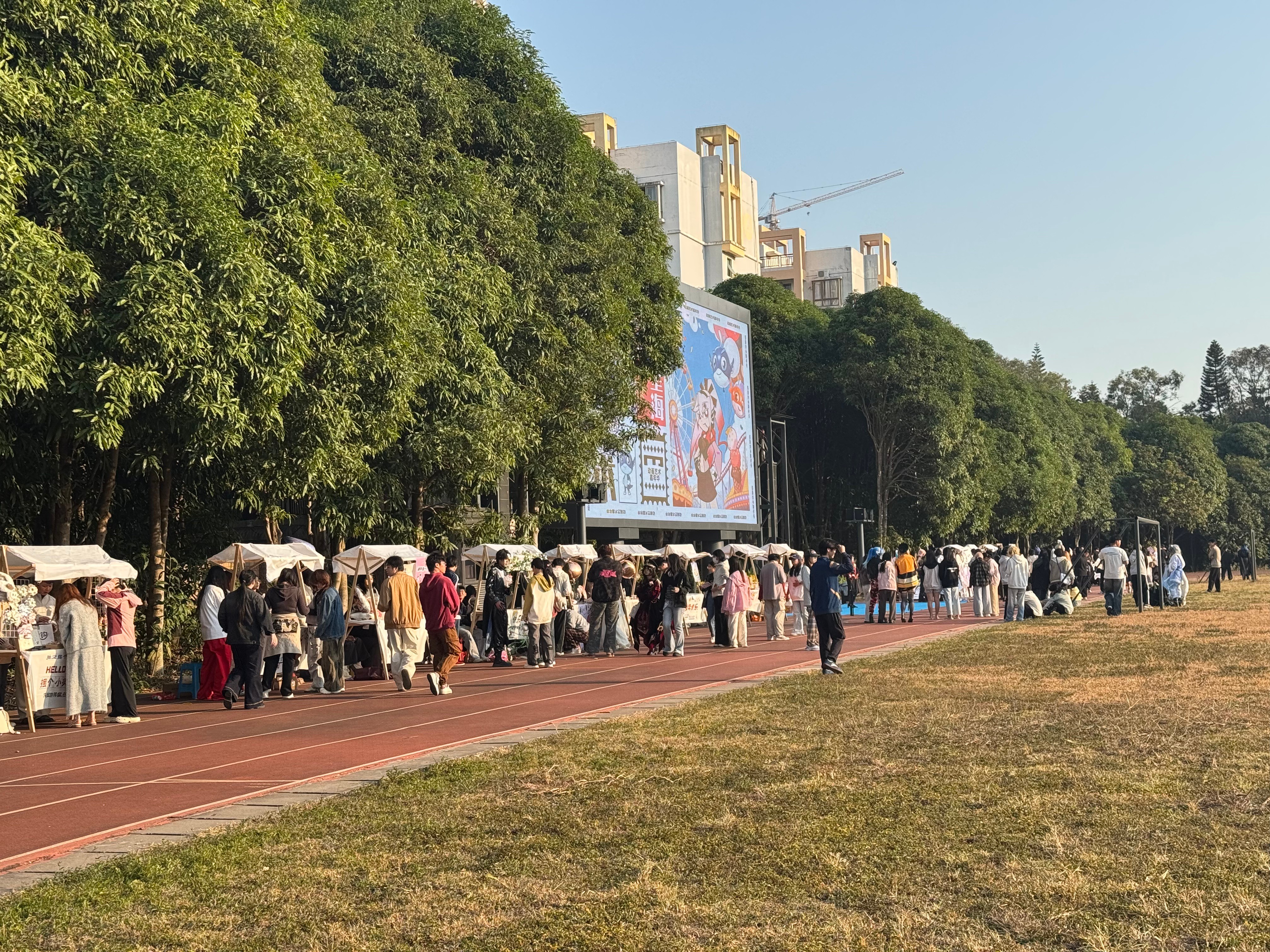 活动现场洋溢着热烈欢快的氛围,动画创意集市各摊位前人头攒动、热闹非凡。学生原创IP衍生文创、手作、个性周边等产品琳琅满目,设计新颖且充满巧思,既有贴合青春主题的潮流设计,也有融入传统元素的创意表达,引得同学们纷纷驻足挑选。