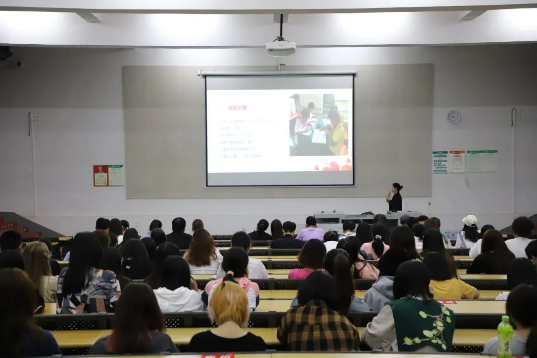 王秘书长向同学们介绍志愿者的含义,让大家可以更好的了解身上的责任。并依次说明志愿服务的定义、特征、原则以及意义。她还阐释了中国青年志愿者协会的精神在于互助、不求回报,志愿者凭借自己的能力,无偿帮助需要帮助的人,解释对志愿服务存在的误解。随后,王柳妮秘书长向同学们介绍志愿活动的地点、志愿服务项目、主要服务对象等。
