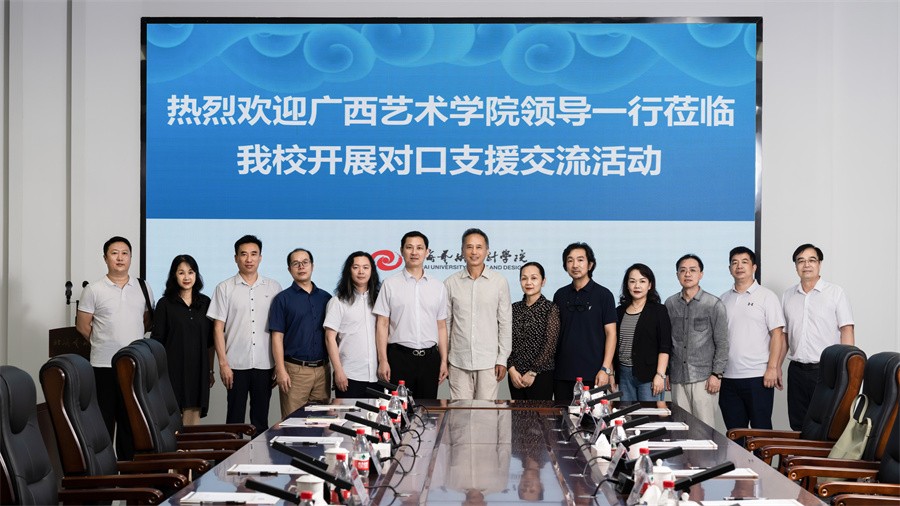 9月26日,广西艺术学院党委常委、副校长谢斌一行9人到我校开展对口支援交流活动,我校校长卢新华,常务副校长胡胜,党委副书记彭仁,副校长陶立阳、包建明及相关部门、单位负责人陪同并参加交流会。