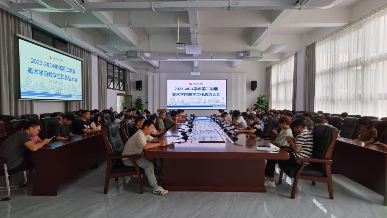 2024624日下午,美术学院在南校区艺德楼八楼会议室举办20232024学年第二学期美术学院教学工作总结大会。本次会议出席人员有教务处副处长林瑜、美术学院党总支书记韩玮、美术学院龚为院长、肖玺副院长、金凯婧副院长、实验室主任、各教研室主任及美术学院全体教师。