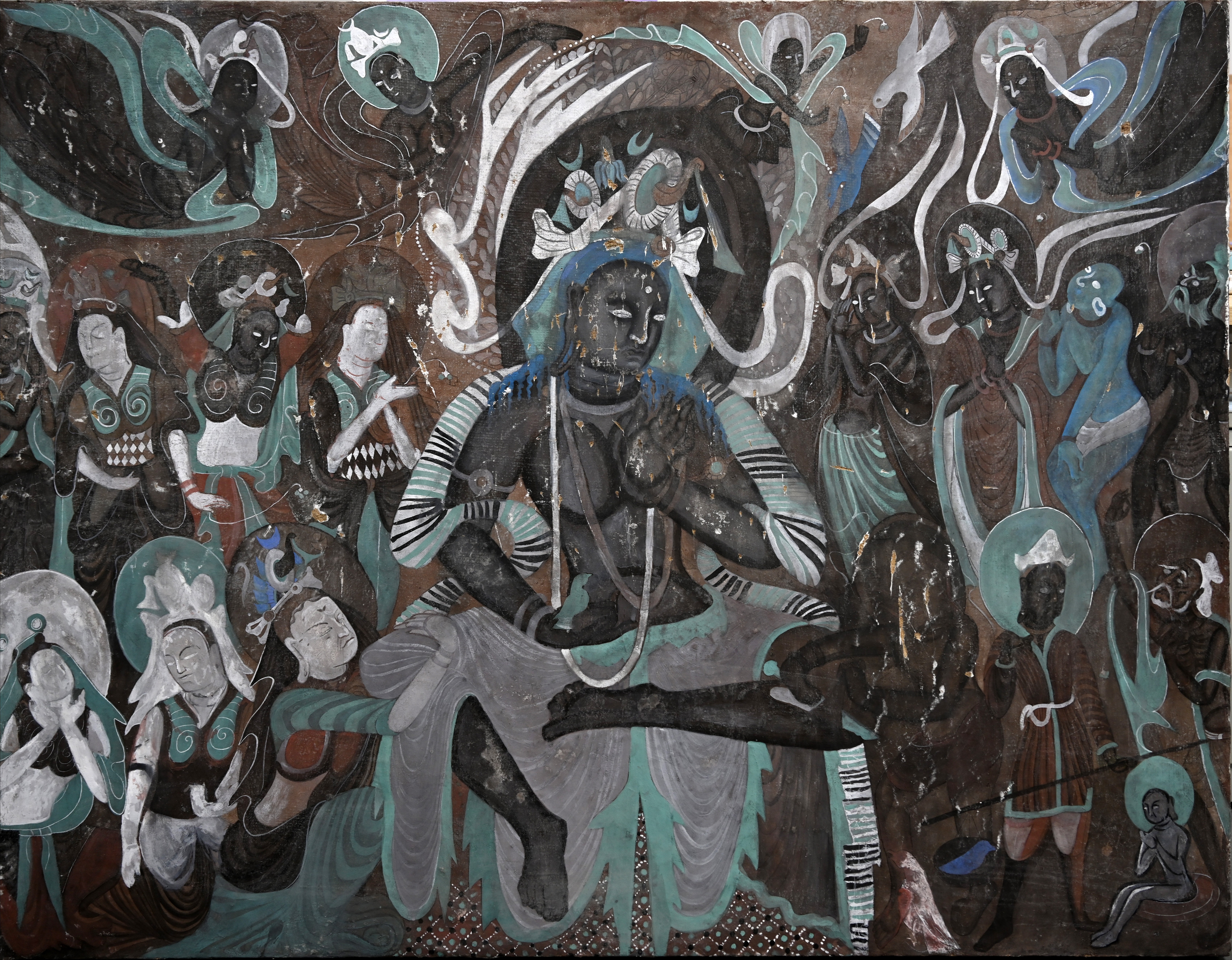 《中国传统壁画临摹》是面向美术学院学生的专业拓展课,以理论和实践相结合的方式,初步认识敦煌壁画的经典遗存。课程从莫高窟的历史背景、文化内涵和壁画故事文本的梳理,在理论上对敦煌壁画构建出一个立体的认识。要求学生绘制中严格按照传统壁画的绘制流程,体会古代画师对壁画工艺的尊重与严谨。建议学生按小组结合完成整铺壁画的临摹,感受壁画独特的图像叙事逻辑,也可个人选取局部进行现状临摹。临摹过程中体会矿物材料的特性、美感,并分析经过时间洗礼后的壁画色彩的承接关系等。鼓励来自不同专业的同学发挥自身艺术能动性,在实践中体会传统壁画与本专业绘画的异同,激发自身的创造性,为日后的创作提供更多的可能性。