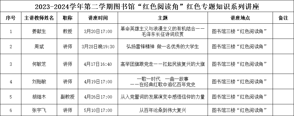 讲座预告|2023-2024学年第二学期图书馆“红色阅读角”红色专题知识系列讲座