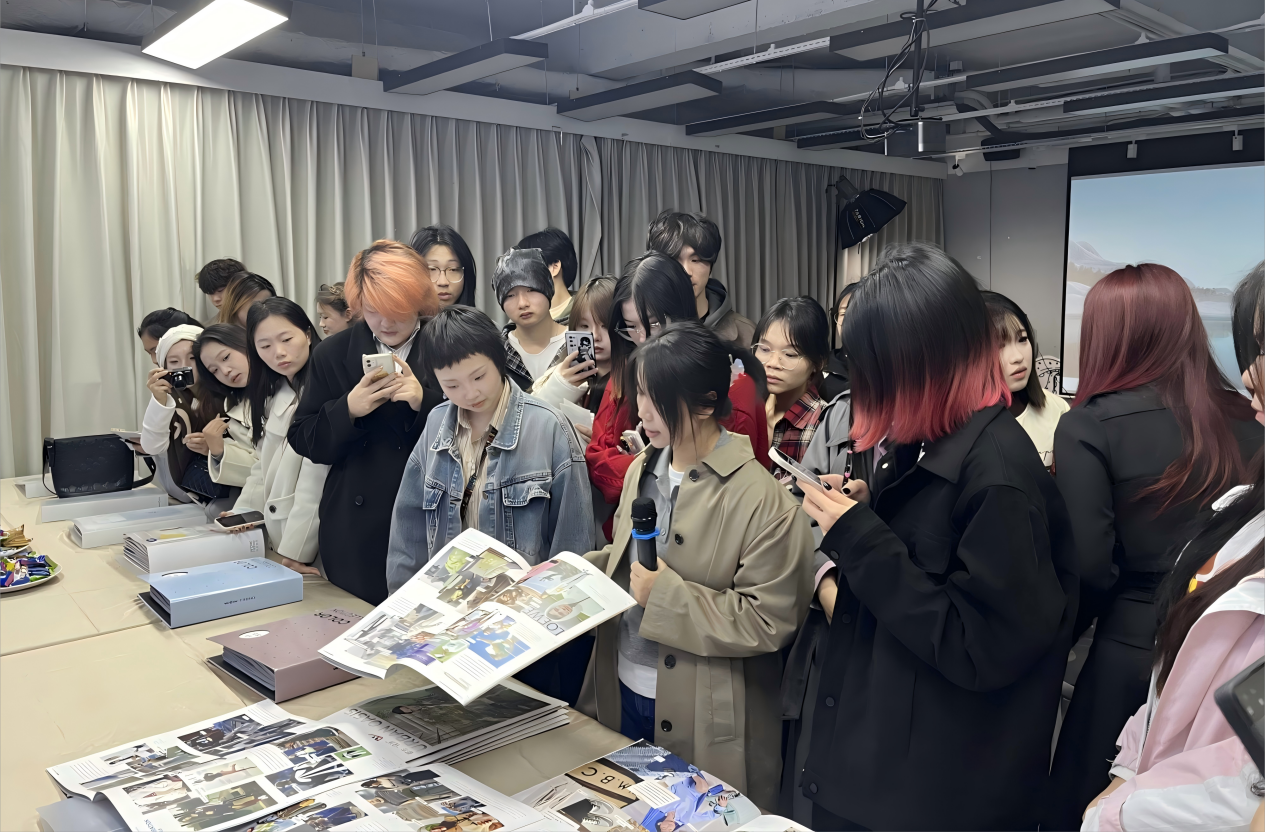 服装学院调研团队首访深圳星潮热点传播股份有限公司。该公司CEO李冰以“趋势-设计-品牌”为主线,剖析市场动态与商业逻辑;T台趋势总监Momo结合T台环境案例,演绎服装设计与场景适配的实战技巧。学生们通过互动问答、研读含面辅料小样的趋势手册,直观掌握服装细节工艺与趋势落地方法,为后续调研奠定行业认知基础。