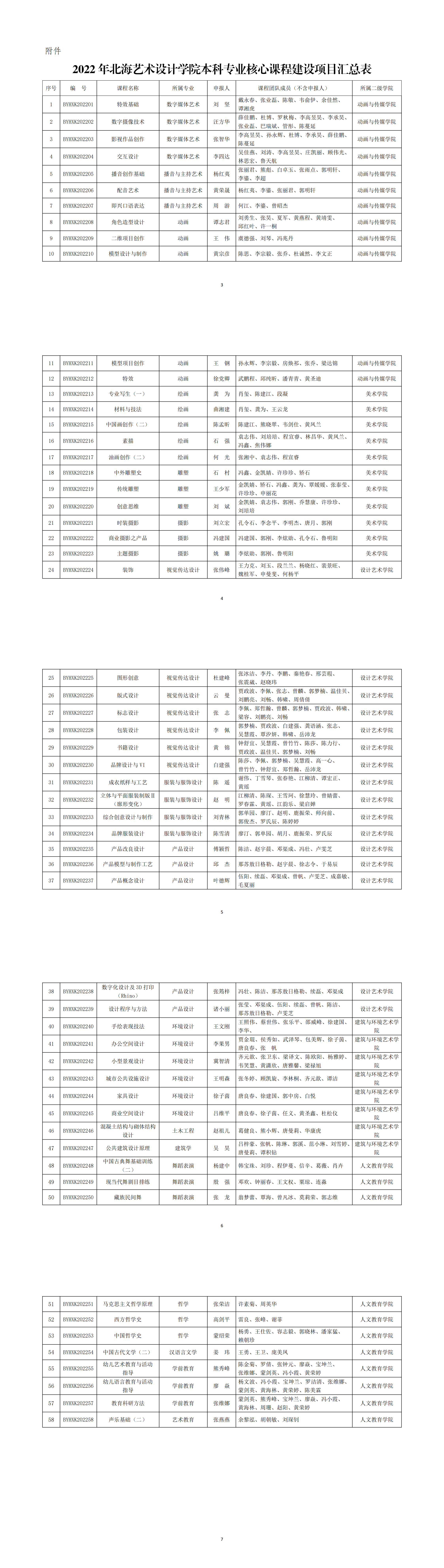 附件:2022年北海艺术设计学院本科专业核心课程建设项目汇总表