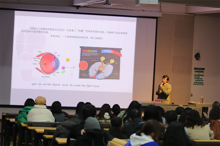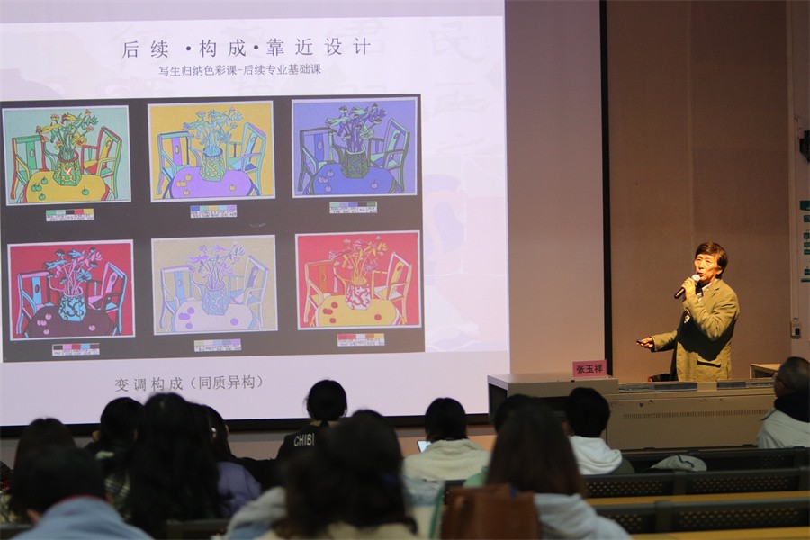 12月8日晚,于我校西校区伦理楼107,我校教授张玉祥为青年教师带来一场题为《目遇成色 与美同行——设计基础教学侧记(色彩篇)》专题讲座,讲座由副校长王斌主持。
