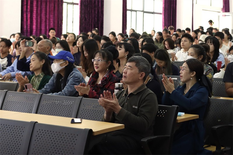 北海艺术设计学院副校长王斌,广西作家协会副主席、北海市文联兼职副主席庞华坚,北海艺术设计学院美术学院院长、北海市文艺评论家协会主席龚为,北海艺术设计学院人文教育学院、市文艺评论家协会、市作家协会以及社会各届文艺人士500多人参加此次名家讲坛。(练馨怡/摄)