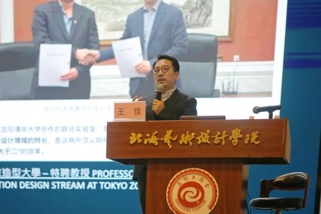 王佳教授指出,AI是当今更具革命性的一个技术,他引导现场师生思考AI在设计流程中需要扮演一个什么样的角色?带领大家逐步深刻体会智能设计的作用。AI的运用不仅显著提高了设计的质量和效率,更为设计创新注入了新的活力,智能技术的发展为设计带来了巨大便利。此外,王佳教授还表示要明确设计的目的,并指明了共生是一个更符合人与AI关系的概念,强调了人与AI技术共生的发展趋势。
