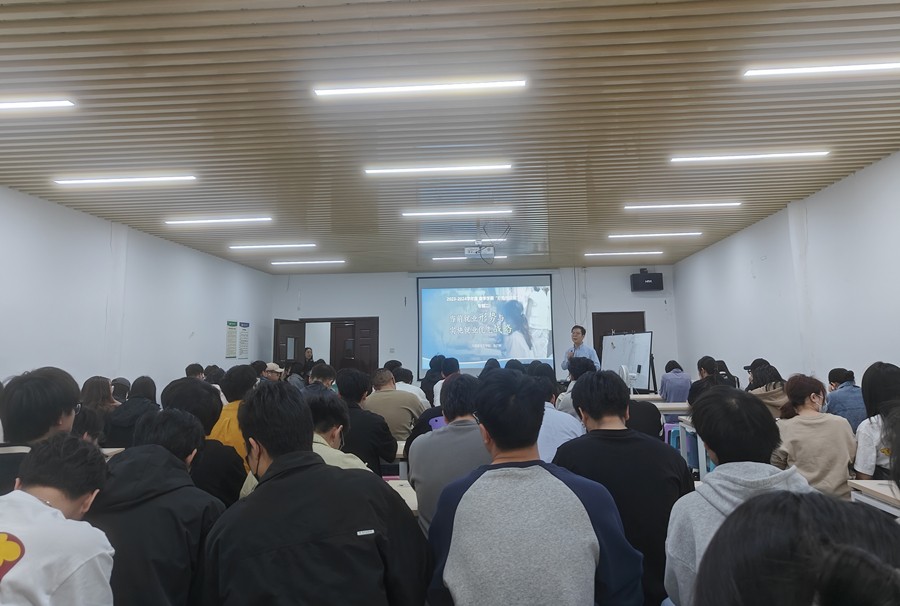 据了解,本学期大四学生形势与政策课安排《2024年全国两会精神解读》《当前就业形势与实施就业优先战略》两个专题教学。课上,姜献生教授主要从2024年政府工作报告要点和两会热词为切入解读2024年两会精神,引导学生正确理解与掌握国家大政方针。紧接着,张广科副教授主要介绍了我国当前就业形势“总体稳中向好”,以及面对就业压力国家实施的一系列效果明显的稳就业政策;他鼓励大学生树立就业信心,要敢于发挥优势,勇于担当责任,多渠道、多层次、多形式尽快实现就业。现场学生均兴趣盎然,雷鸣般的掌声连续不断,整体效果反映良好。