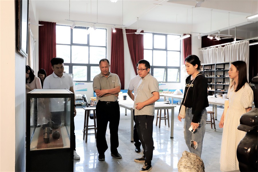 会前,党委副书记、副校长彭仁,美术学院副院长龚为陪同杨一笔书记一行先后参观了学校艺术楼、“本科教学综合改革成果展”“校政企行协同育人 服务地方经济发展”展厅和大师工作室、学生作品展、党建工作展板等,详细了解学校学科建设、师生作品创作、产学研融合、校企合作、教育教学成果转化等方面的情况。