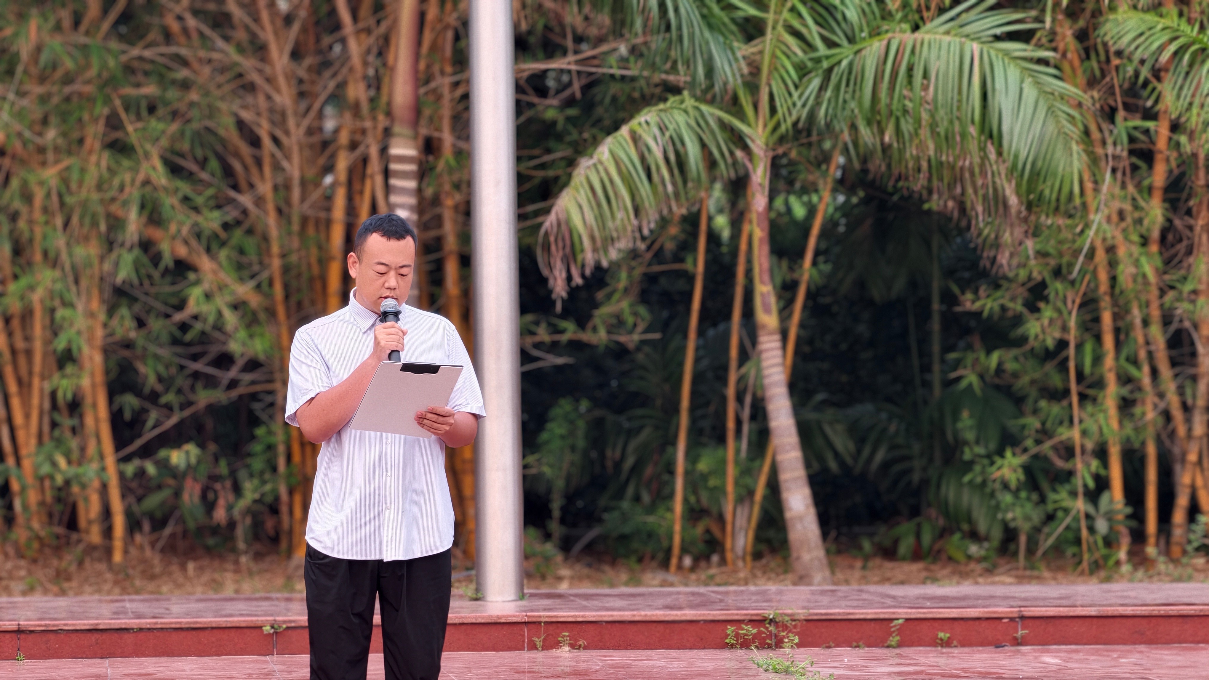 升旗仪式上,美术学院副书记鲁明阳围绕广西“三月三”节日文化、民族团结、假期安排及文明安全倡议等内容发表国旗下讲话。