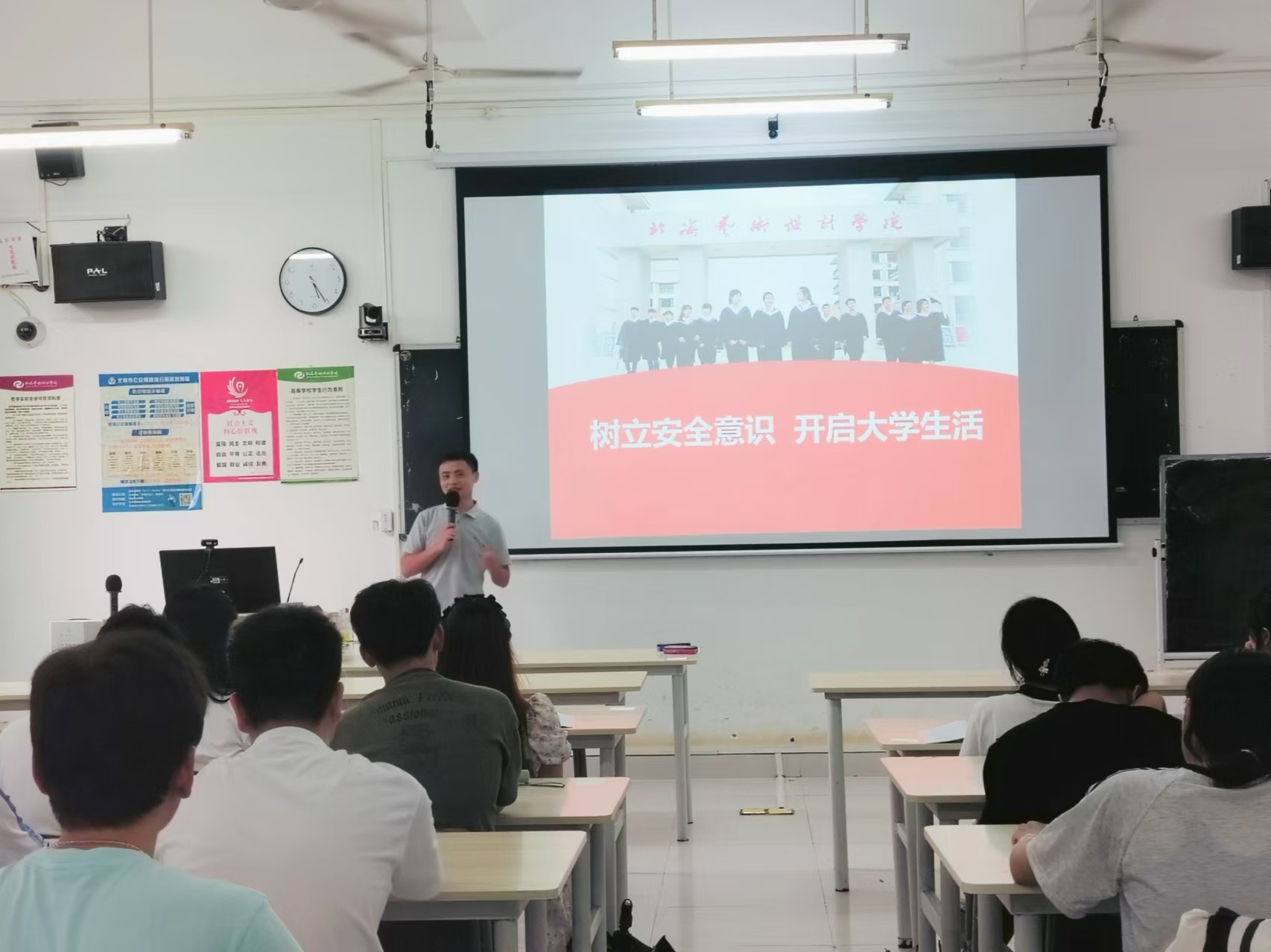 (学院党支部书记谢伟对新生进行安全意识教育)