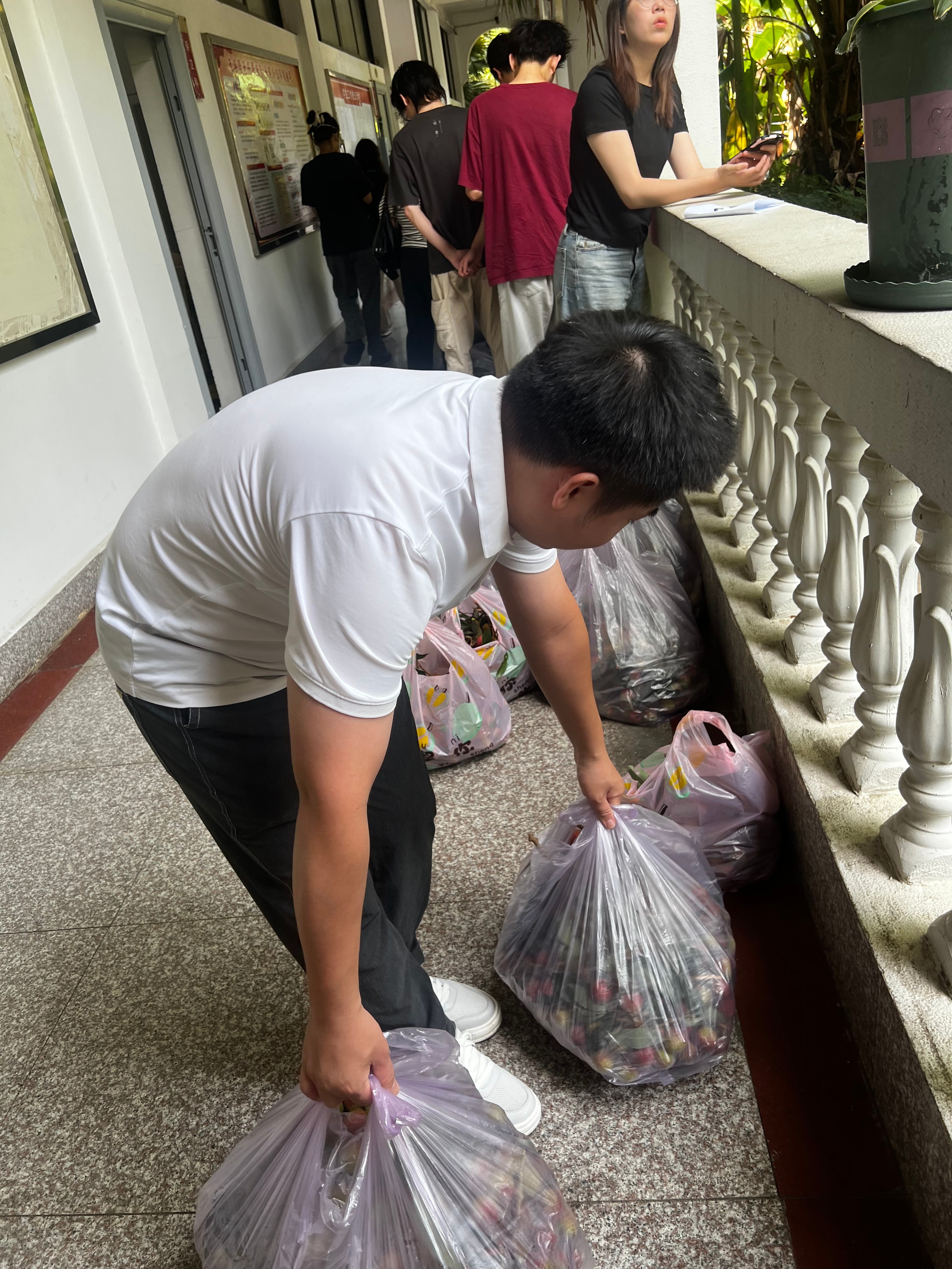 为了确保同学们能品尝到最新鲜的荔枝美味,学校相关部门提前谋划,多方比选,严格把控荔枝品质。从产地的优选、运输的保障,到接收、分装、发放各环节的无缝衔接,无不体现着学校的用心与细致。发放现场,书法学院全体学工教师共同协作,设立高效便捷的领取点方便同学们签领。一袋袋红艳饱满、带着绿叶清香的荔枝被迅速、有序地分发到同学们手中。现场气氛热烈而温馨,同学们脸上洋溢着惊喜的笑容,迫不及待地分享着这份来自学校的“夏日限定”甜蜜。