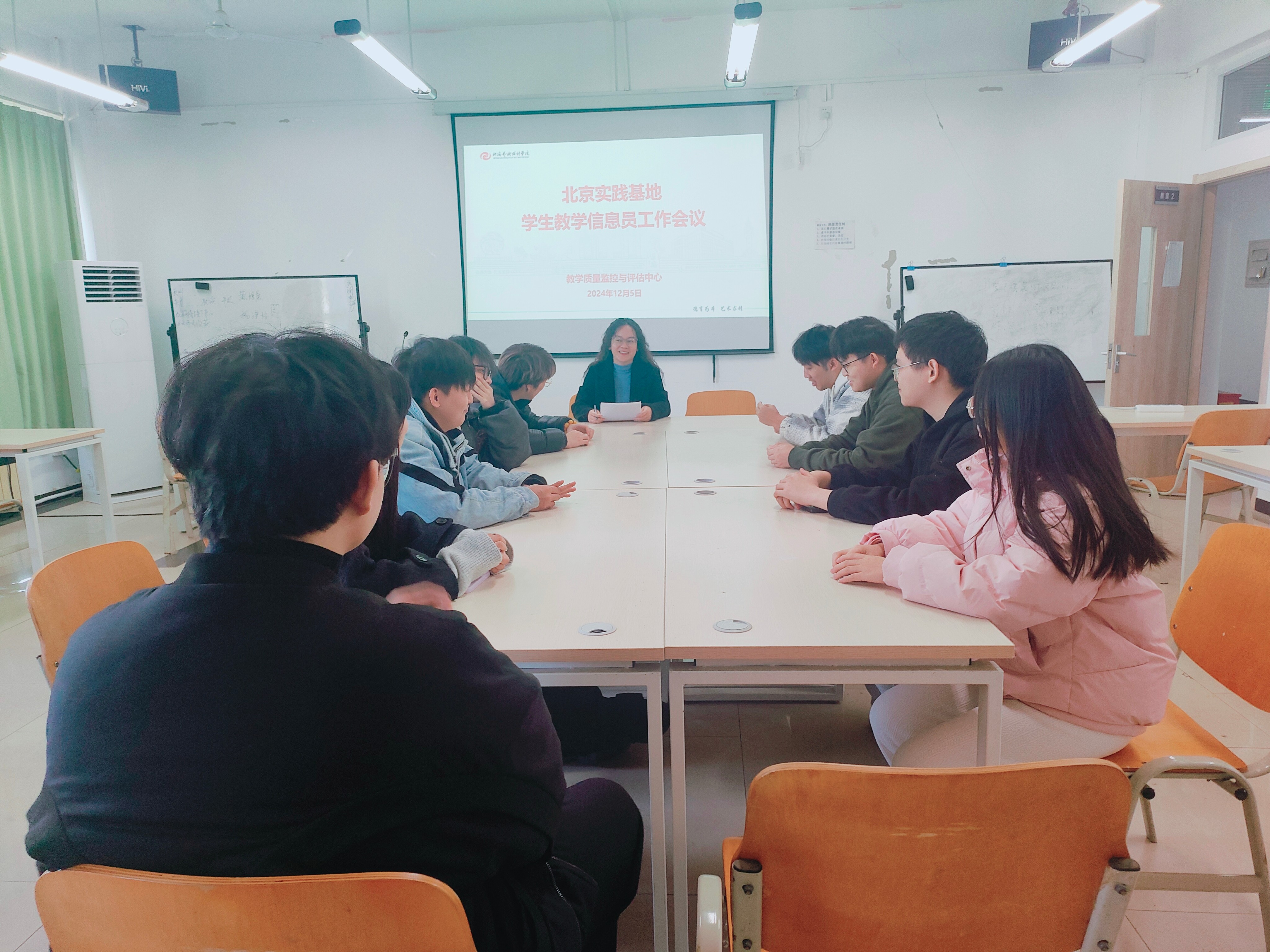 为确保实践教学环节紧密契合教学规划与目标,深入了解学生在实践基地的学习状况,2024年12月4日至5日,教学质量监控与评估中心对位于北京的实践基地进行了本学期期末的常规教学督查。此次督查工作重点在于毕业设计(论文)的开题答辩流程与日常教学管理规范,同时与基地的教师及学生代表展开了深入的交流座谈,了解教学情况。