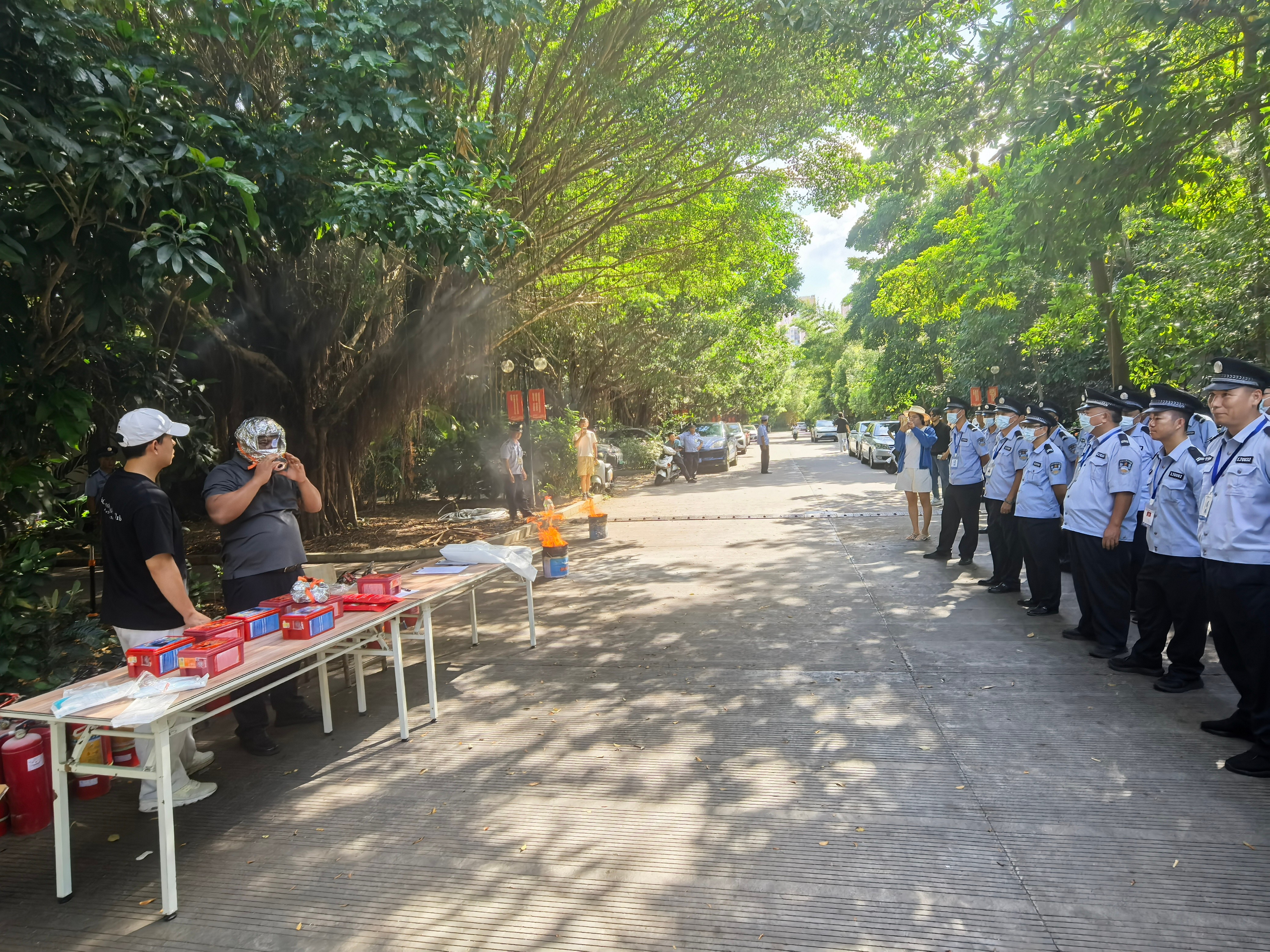 培训中,保卫处副处长冯海波详细讲解了灭火器、灭火毯、消火栓、过滤式消防自救呼吸器等消防器材使用方法;发生火情时,如何正确报警,如何扑救初起火灾,如何组织疏散和自救逃生。