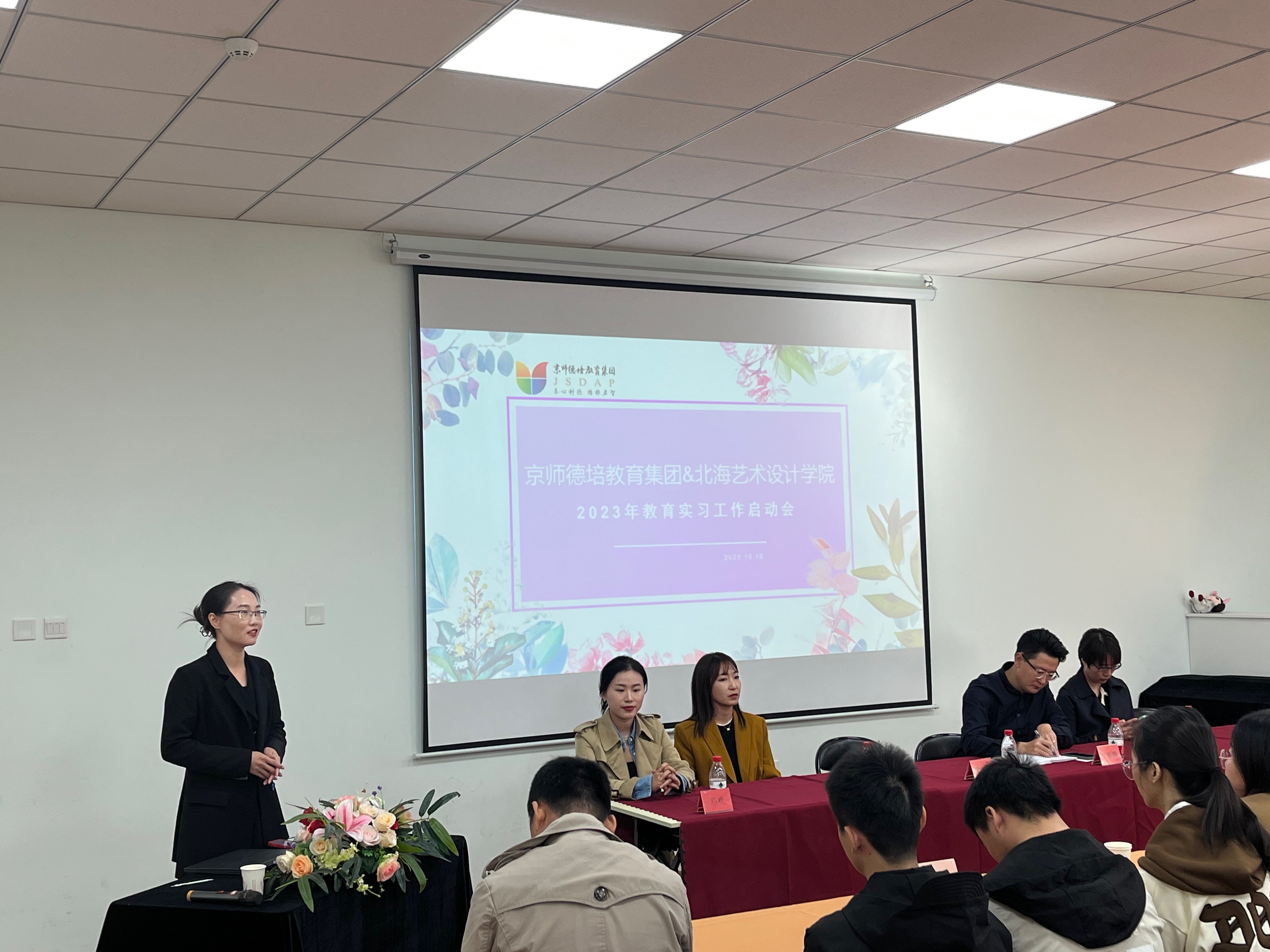 京师德培教育集团总园长丁振鹏、人文教育学院党总支副书记邓欢、北京实践基地办公室副主任严腾、学前教育教研室主任蒙剑英、实验室副主任冯小霞、2020级辅导员孔德相、京师德培教育集团各园长,以及2024届学前教育专业在该集团集中实习的39位同学出席会议会议由京师德培教育集团人事负责人马艾萍主持。
