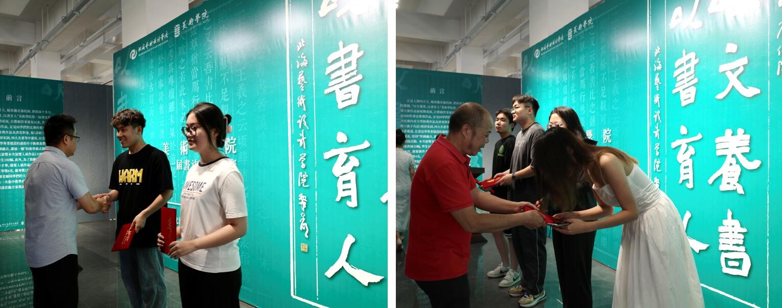 为激发学生创作动力与激情,鼓励学生深入艺术创作,本次展览共评选出一等奖2名,二等奖4名,三等奖6名,优秀奖15名。随后,由学院领导与书法学专业教授为获奖同学颁奖。