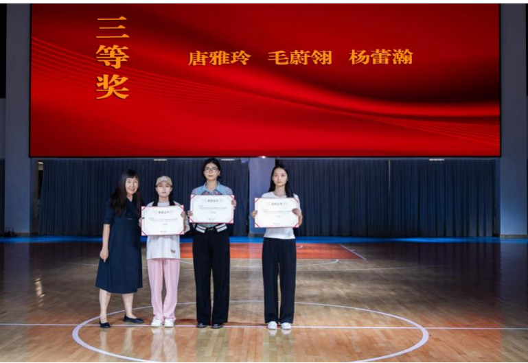 在入围丝巾展示后进入了颁奖环节设计学院副院长白建强李佩颁发优秀奖外聘教授张树新赵明刘青林和徐雯分别颁发一二三等奖和最佳创意奖