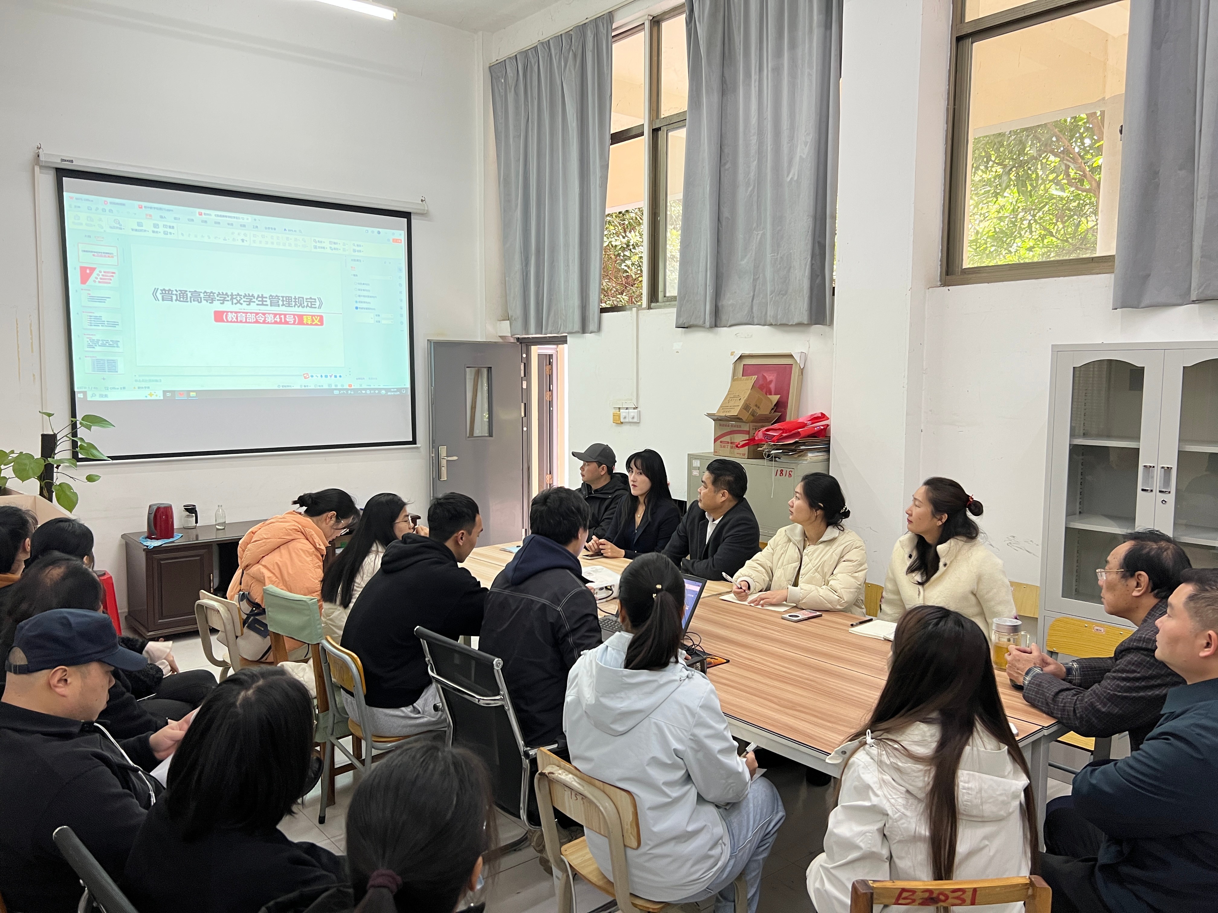 为帮助全体教职工深刻理解《普通高等学校学生管理规定》(教育部令41号)文件精神,推进学校学生管理工作规范化,切实维护学生合法权益和高等教育公平公正,12月30日上午,哲学学院在东校区综合楼104会议室组织全体教职工开展集中学习《普通高等学校学生管理规定》(教育部令第41号)文件精神专题会。会议由我院党支部书记谢伟主讲。