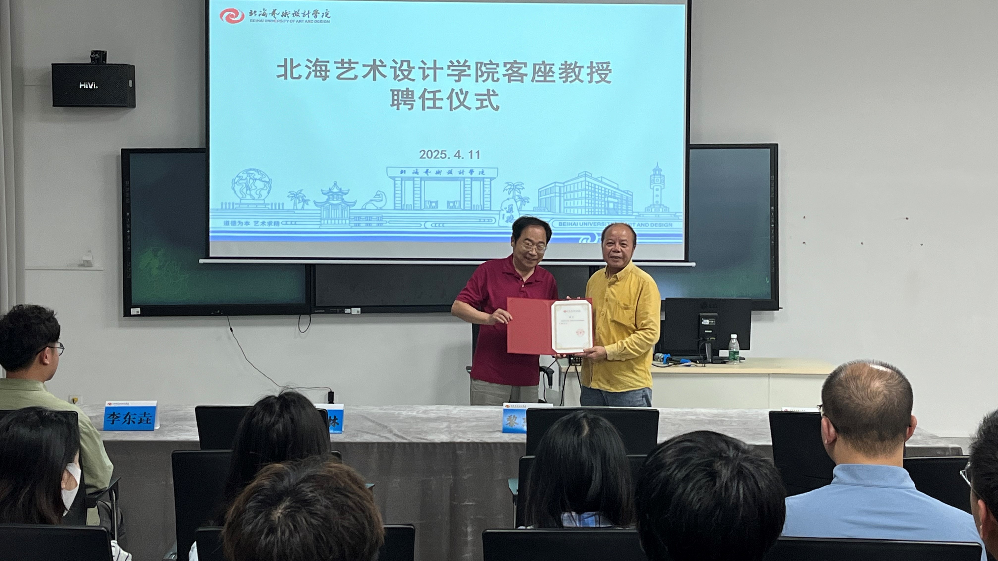 2025年4月11日上午,北海艺术设计学院书法学院于艺德楼507书法学教研室举行客座教授聘任仪式,正式聘请著名书法文献学专家杨宝林教授担任学院客座教授。仪式由书法学院党支部书记喻广林主持,学院院长黎东明及师生代表共同出席。