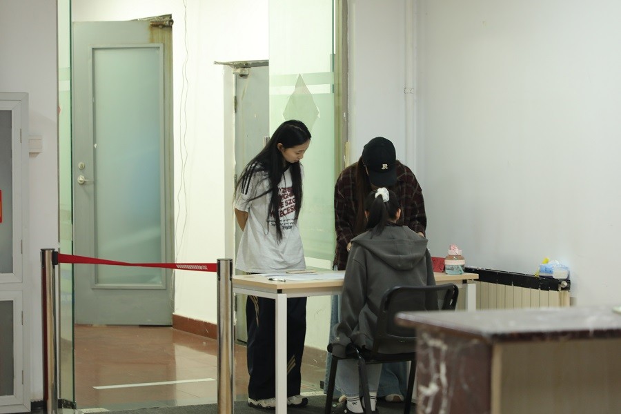 学生核验身份签到入场