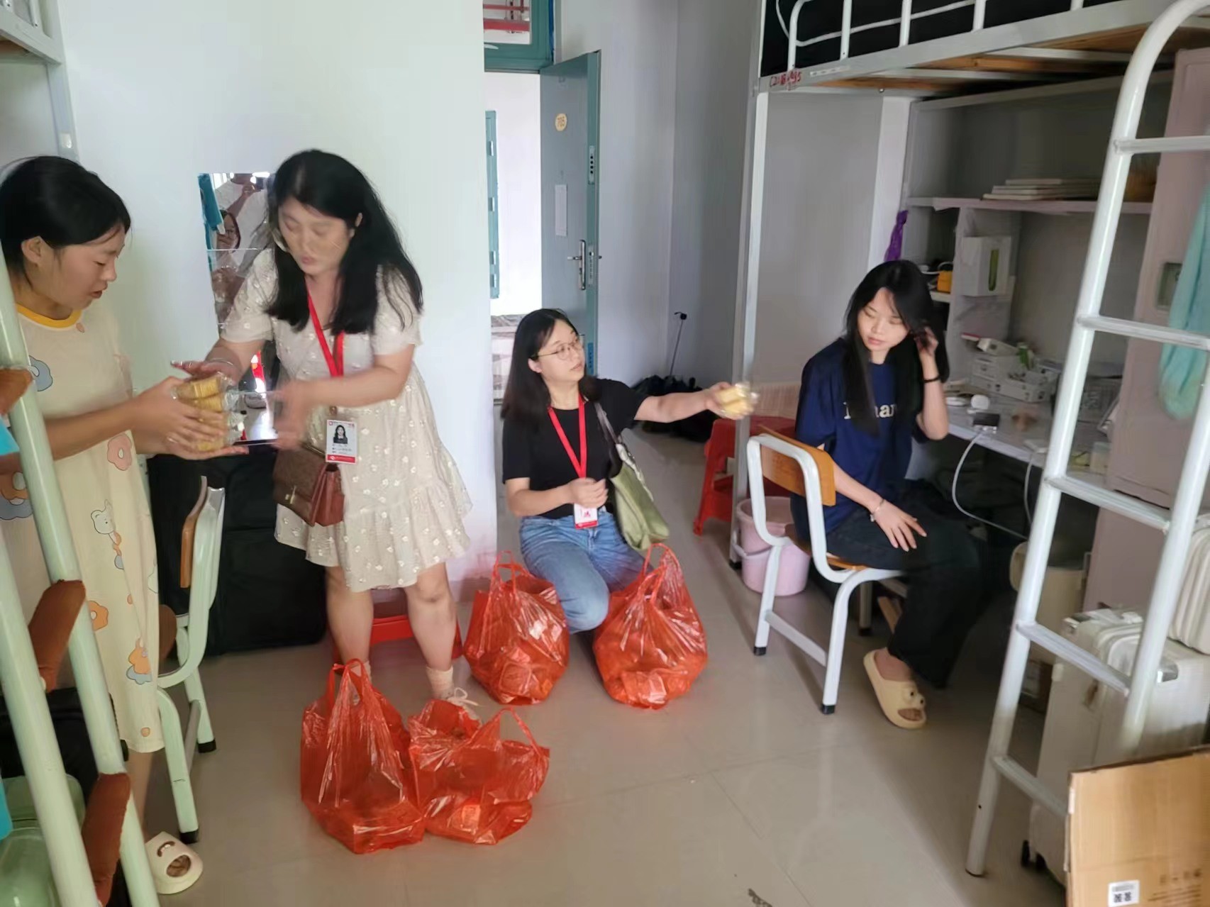 在宿舍走访过程中,学院领导们不仅将学校的中秋祝福带给每位同学,也将安全教育的理念贯彻到每位同学心中。强调了在寝室吸烟、饮酒等不良行为易引发安全问题,提醒学生保持寝室整洁卫生,促进室友间的和睦相处,共同打造文明寝室。