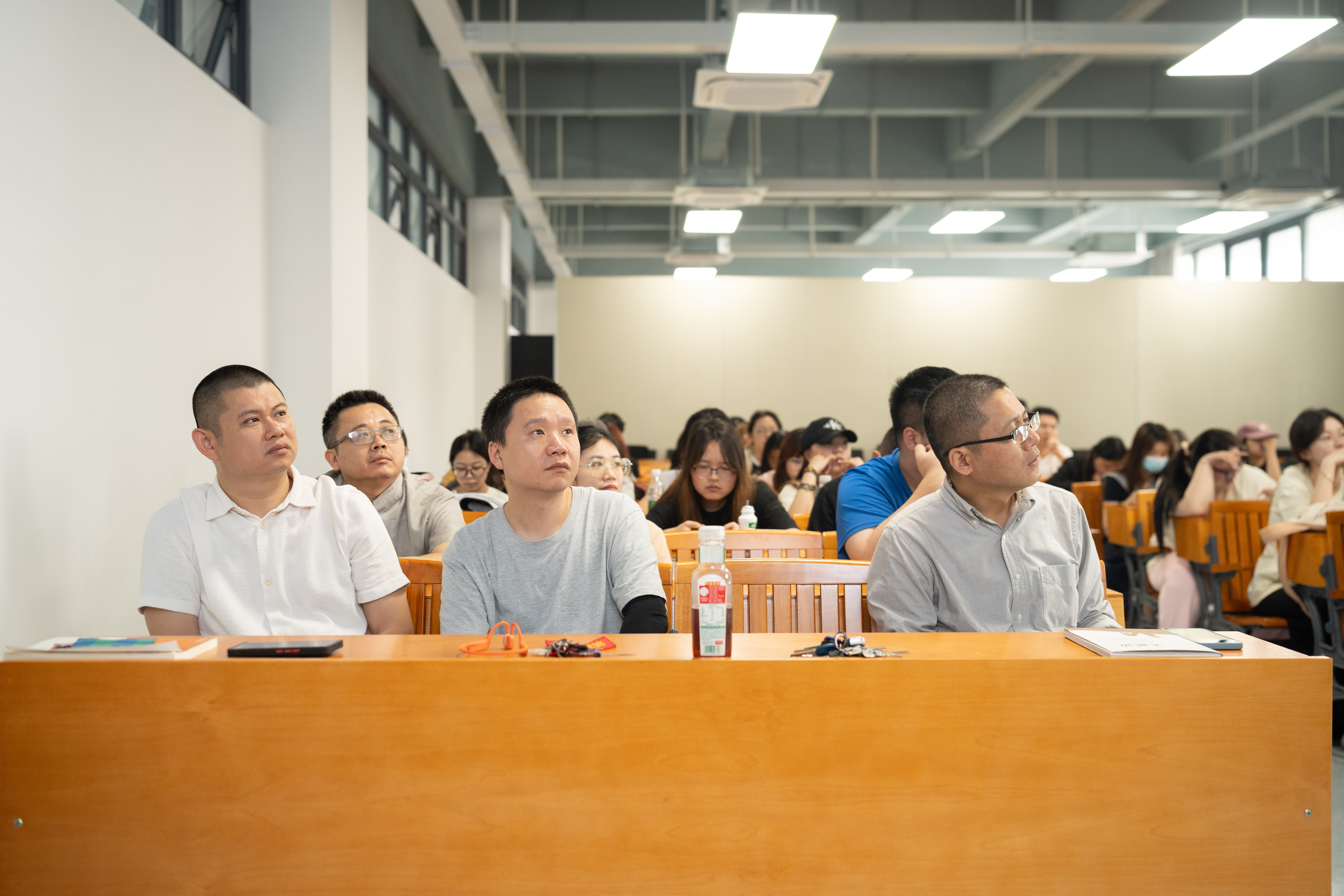 本次讲座最大亮点在于李洋教授的现场写生示范环节。在师生们的屏息注视下,他以教室环境为对象,从构图构思、线条取舍到色彩铺陈,将理论知识转化为具象实践。笔触游走间,画面逐渐鲜活,李洋教授同步讲解观察方法与创作思路,让观众直观感受到从观察到表现的艺术转化过程。