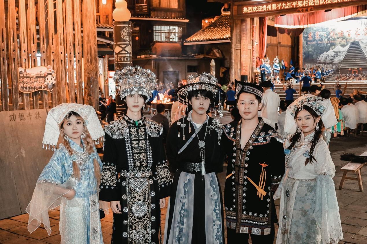 部分同学还穿上侗族、苗族、壮族等少数民族服饰,积极参与当地举办的篝火晚会,在与当地居民的亲切互动中,不仅拍摄了生动的人文素材,更深刻体验了民族文化的交融与共情。
