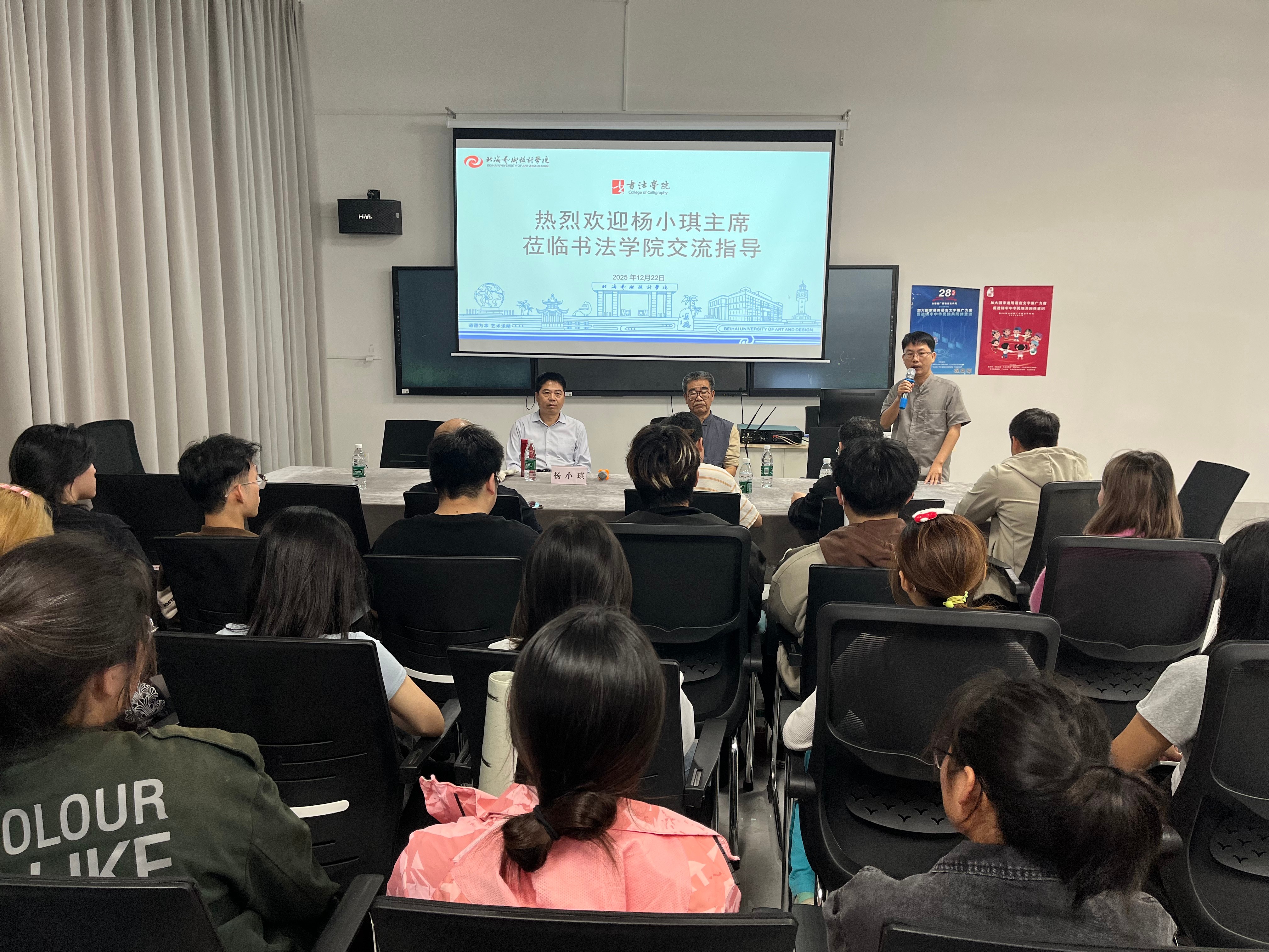 2025年12月22日下午,书法学院在艺德楼507书法学教研室举办艺术座谈会暨交流笔会。此次活动由书法学院常务副院长苏乃从主持特别邀请中国书法家协会会员、国家二级美术师、陕西省书法家协会副主席、山西书学院院长杨小琪为主讲嘉宾西安市书法家协会第五届副主席、西安美术学院客座教授李和生书法学院师生代表共同参与