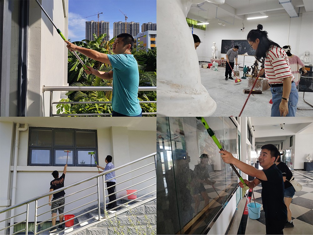 2021823日,美术学院全体教师在龚为副院长亲自带领下,对艺术楼进行了一次彻底的大扫除。经过了一个多月的暑假,又有几次台风天诸多暴雨天,校园里变得一片狼藉。
