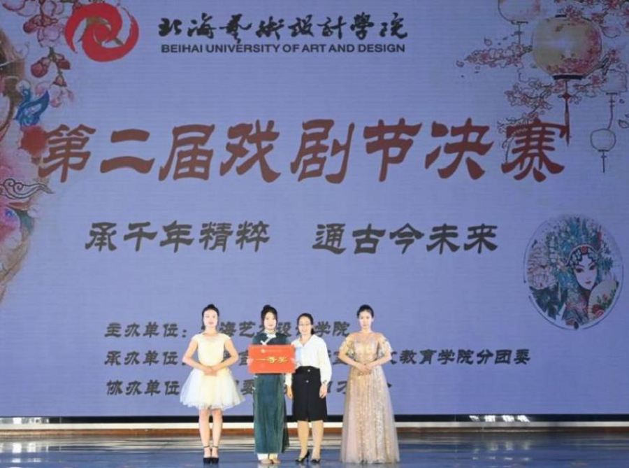 戏剧可见人生,人生融于戏剧。为深入学习党的二十大精神,进一步贯彻落实习近平总书记在中国作协十大开幕式上的重要讲话精神,丰富我校课余文化生活,弘扬优秀传统文化,加深本民族文化认同感。2022年11月18日19时30分,北海艺术设计学院“承千年精粹,通古今未来”第二届校园戏剧节决赛暨颁奖仪式在西校区大礼堂隆重举行