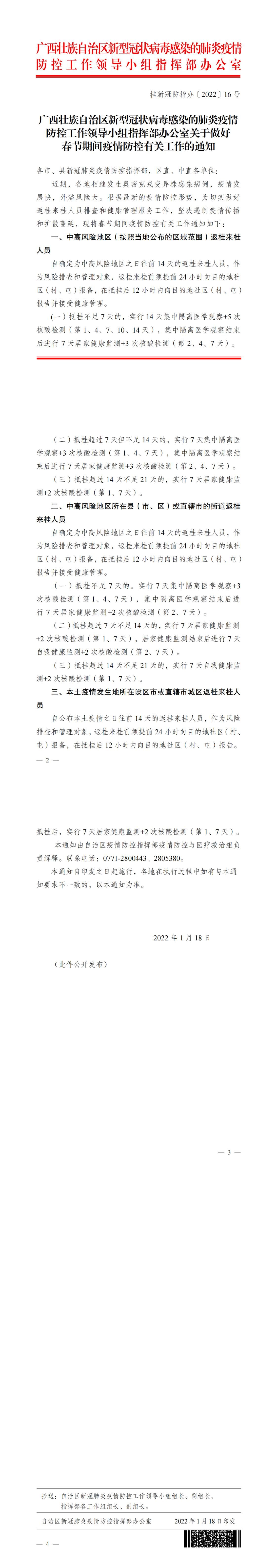(桂新冠防指办〔2022〕16号)关于做好春节期间疫情防控有关工作的通知