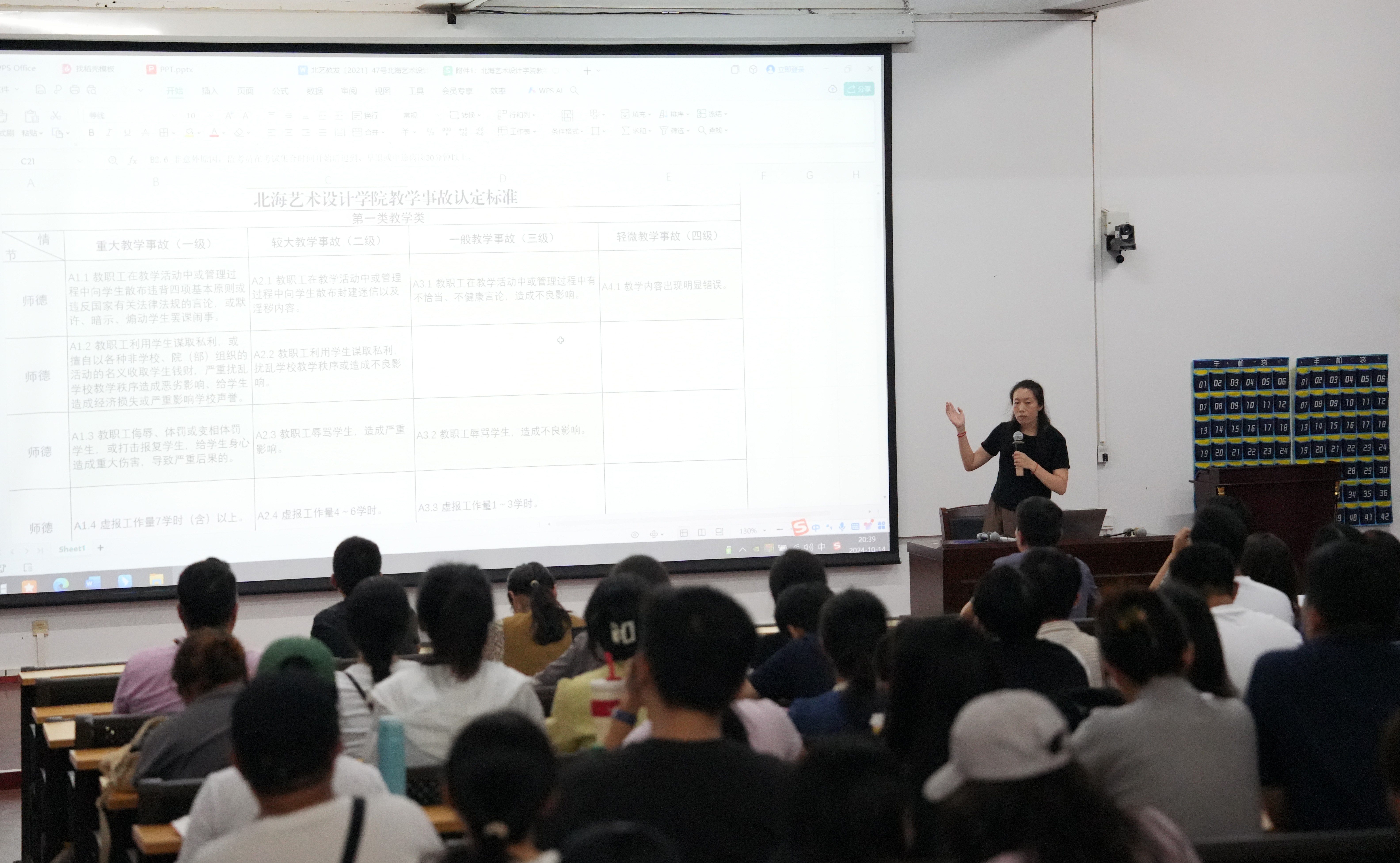 李佩副院长重点介绍了北海艺术设计学院教学事故认定及处理办法,详细介绍了教学事故的级别及具体内容。同时,反馈了本学期教学期初的检查情况,针对存在的问题提出了具体的改进措施。