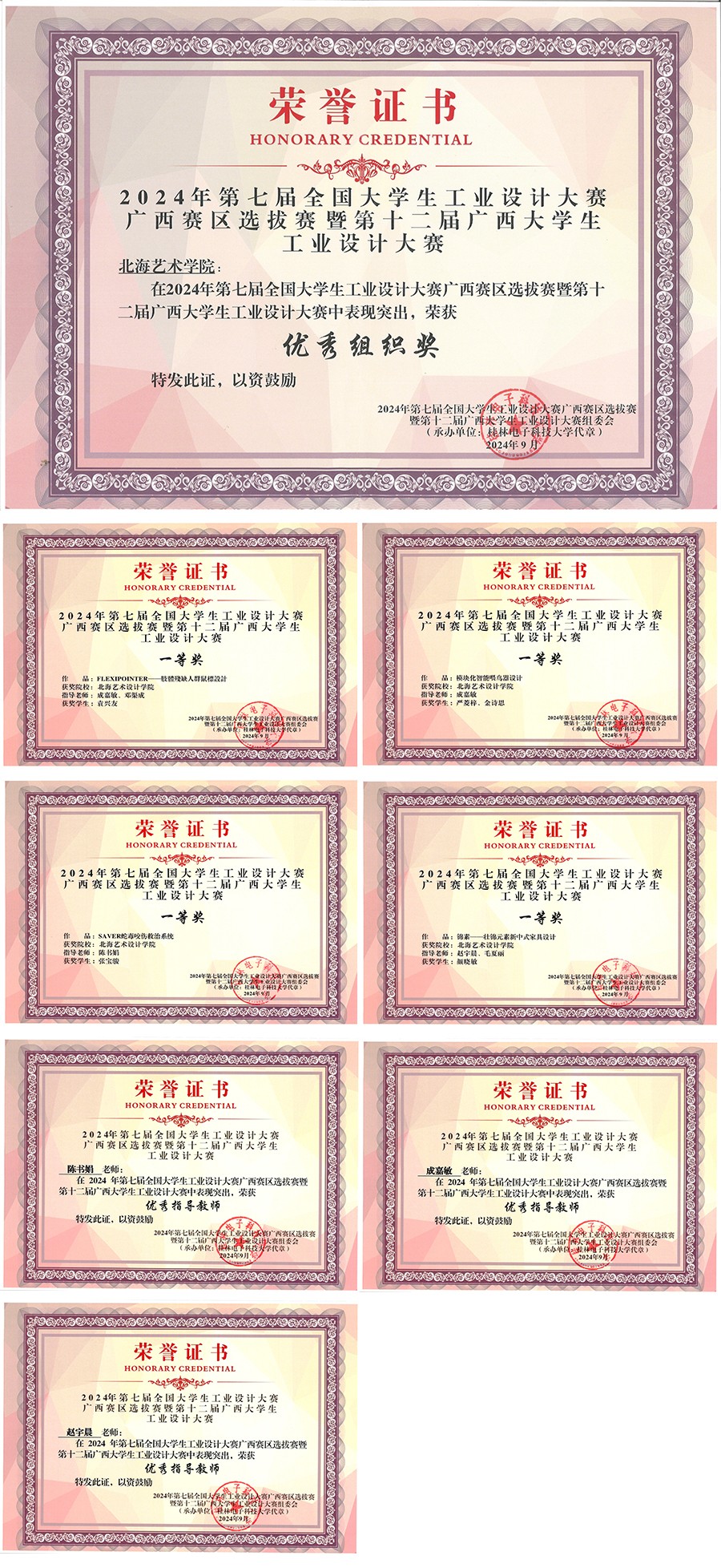 近日,喜讯传来,我院师生2024年全国大学生工业设计大赛广西赛区中斩获佳绩。在本次比赛中荣获奖项33项,其中,一等奖4项,二等奖6项,三等奖233名教师被评为“优秀指导教师”,我院荣获“优秀组织奖”