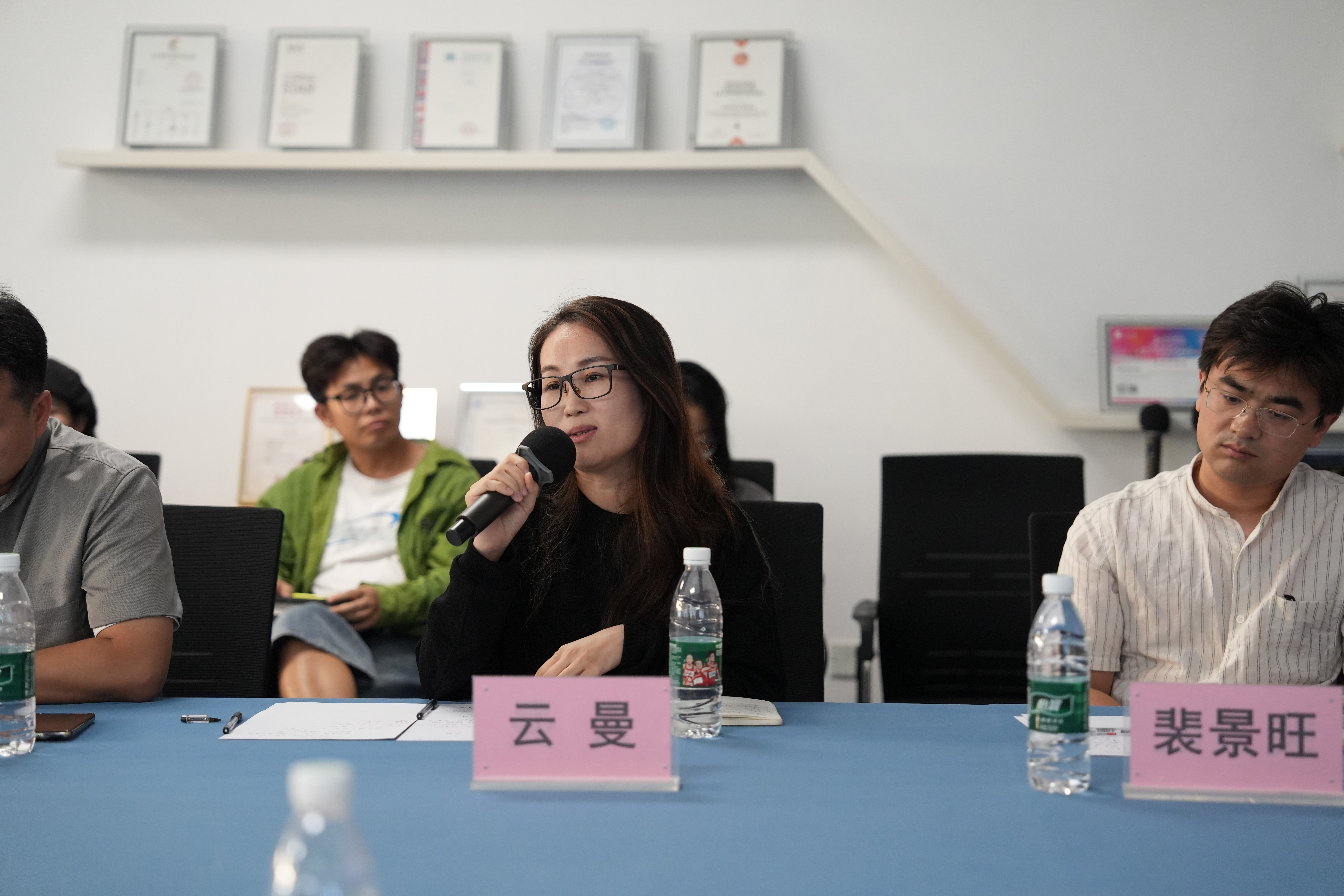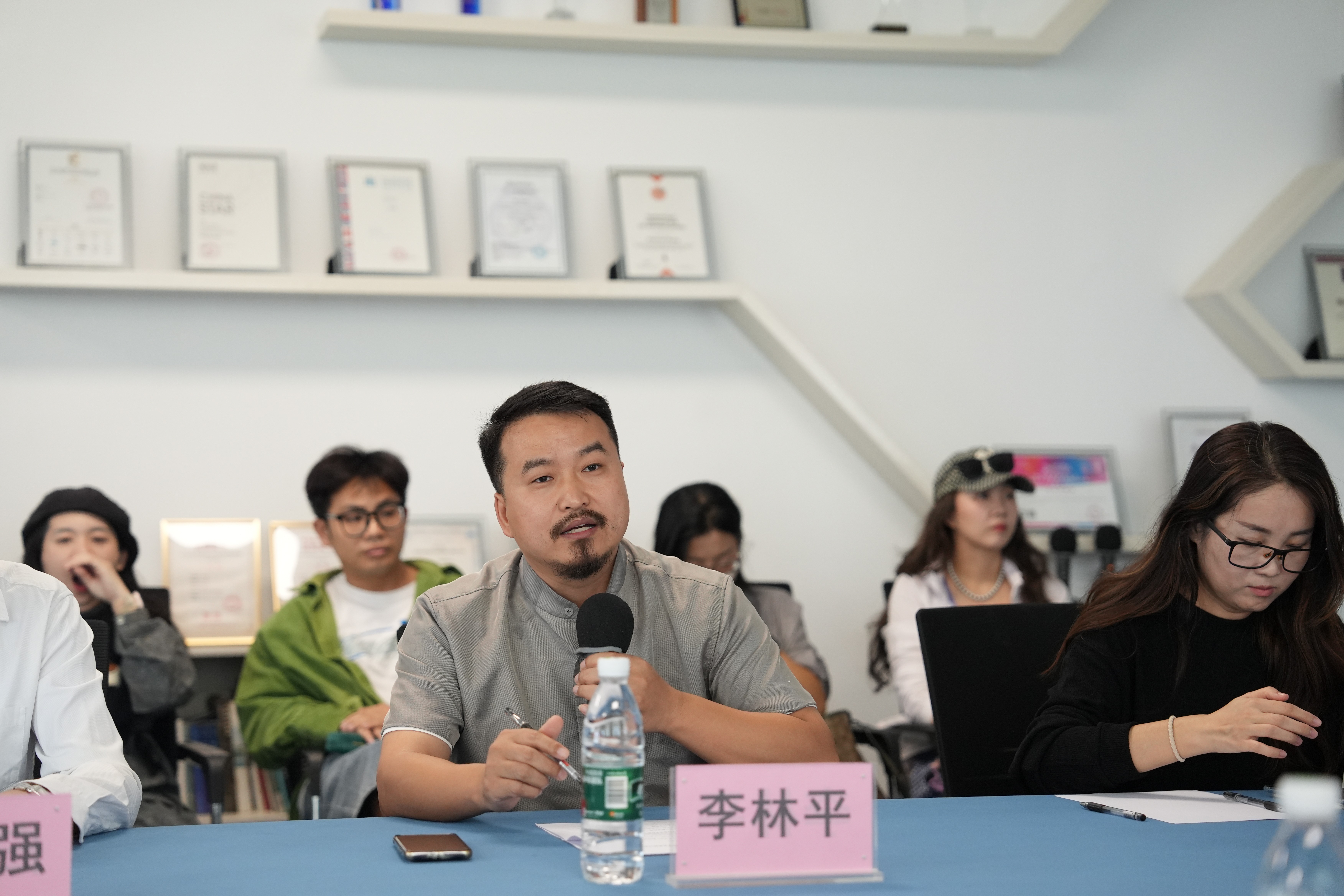 团队成员桂林旅游学院视觉传达教研室梁晓宇主任、服装学院副院长郝士杰、产品设计专业张莹老师分别汇报本专业产学研成果。