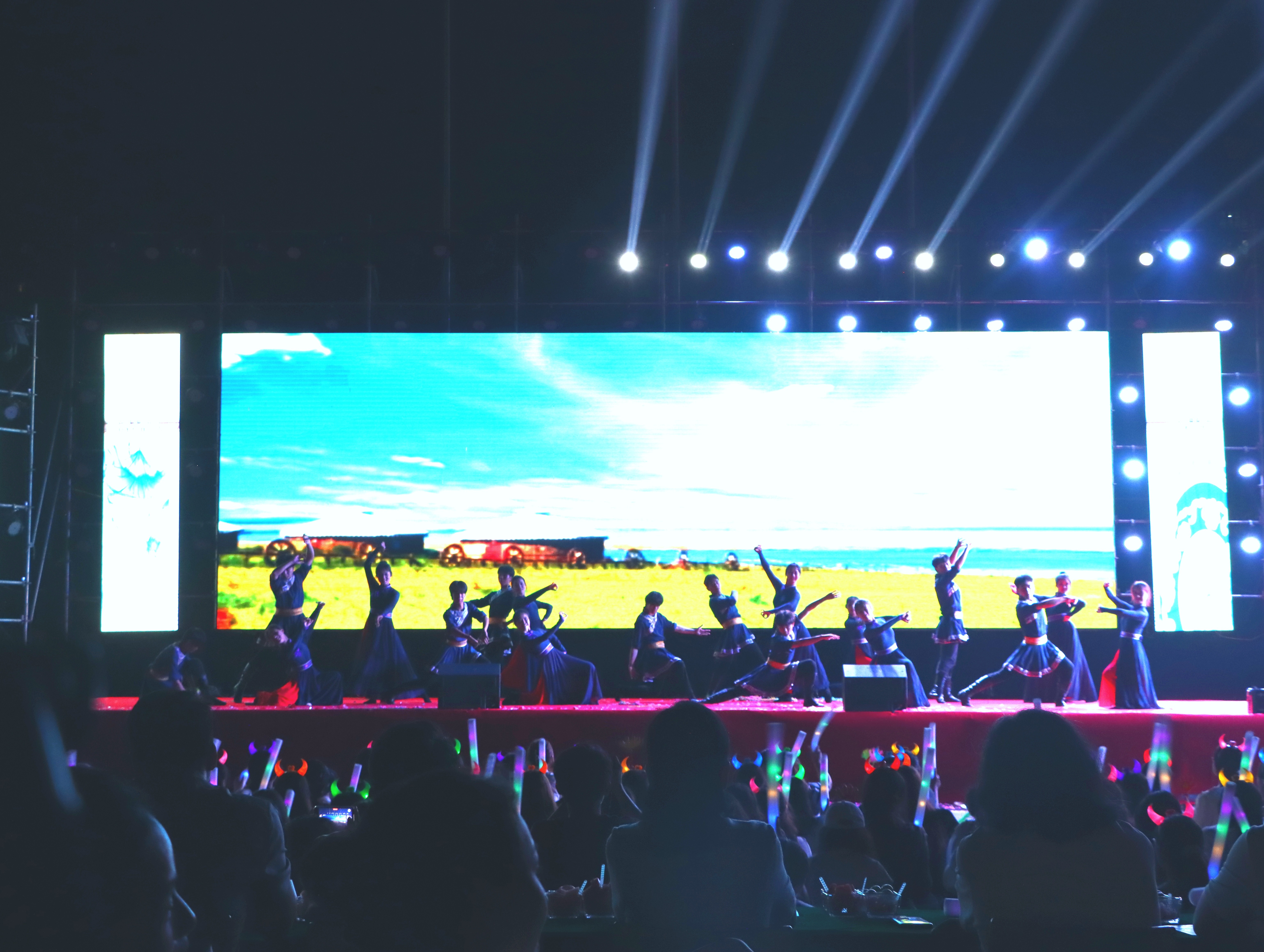 蒙古舞《吆呼尔》尽显蒙古族舞蹈的磅礴魅力。舞者身姿奔放而柔美,流露出蒙古人民的豪迈与自信,深刻展现了蒙古族深厚的文化底蕴和民族自信。