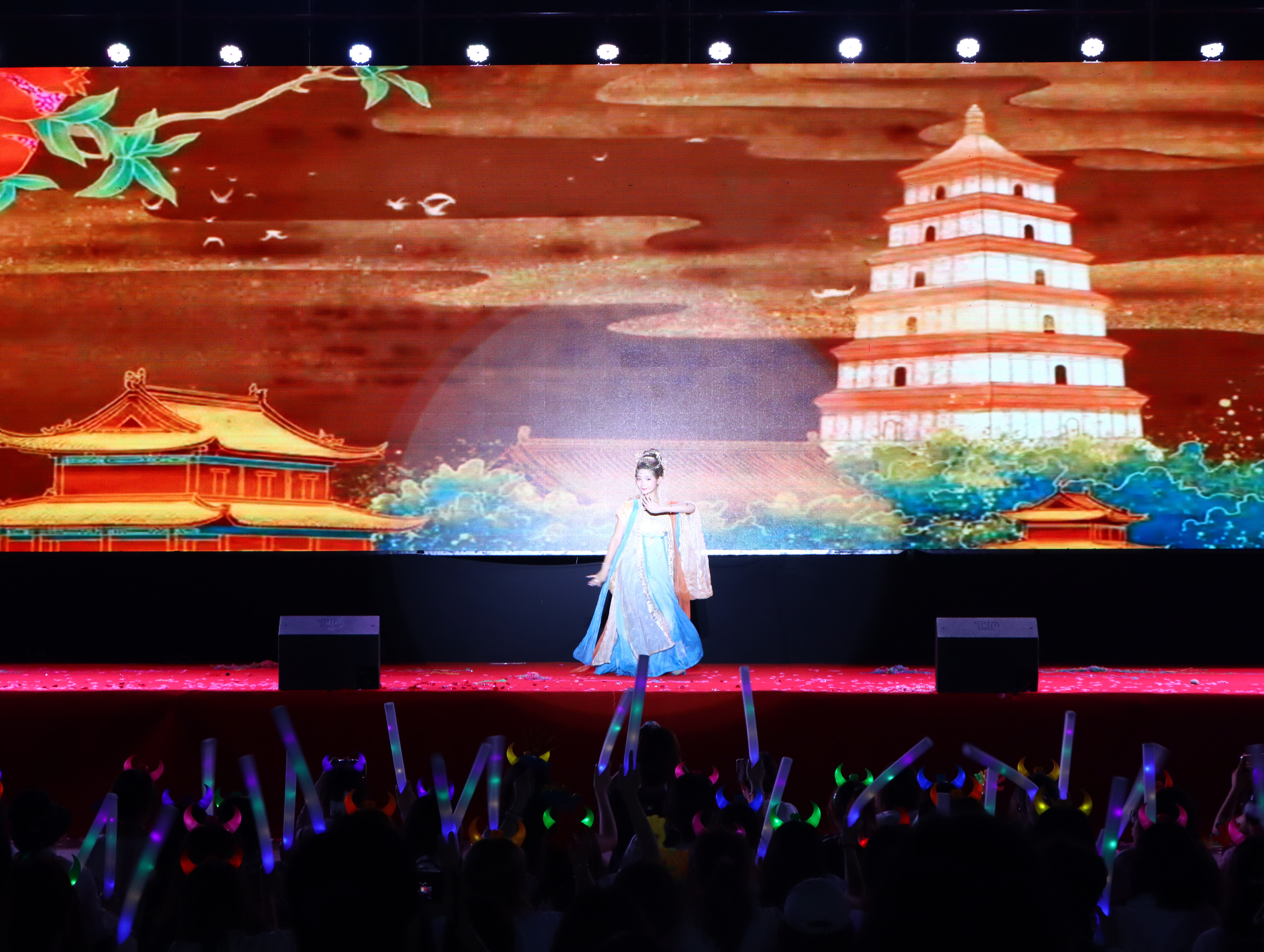 echo动漫社带来的《向阳而舞》以动漫为主题,将舞蹈元素与特效元素进行创意结合,打造出了梦幻般的视觉效果,青年人的热血与激情在此刻释放。