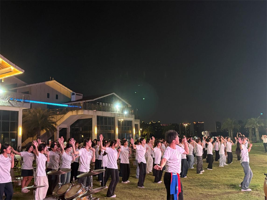 据悉,此次活动由北海市总工会、中共北海市委宣传部、北海市旅游文体局联合主办,旨在丰富全市职工精神文化生活,以群众喜闻乐见的文艺形式弘扬社会主义核心价值观。活动筹备阶段,我校舞蹈学院受邀承担主题曲《北海等你来!》的舞蹈创排与首演工作。舞蹈学院常务副院长邓欢牵头组建创作团队,带领学生开展编创工作。创作过程中,团队深度融合现代潮流艺术元素与北海海洋文化意象,以富有节奏感与表现力的肢体语言,生动诠释“北海等你来”的赛事主题内涵与城市热情。