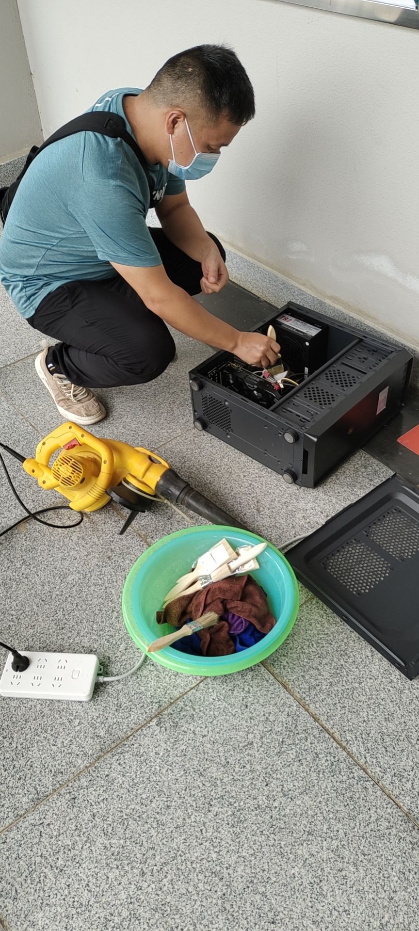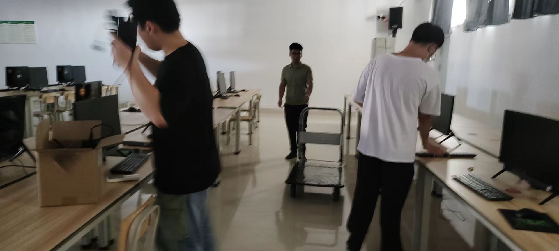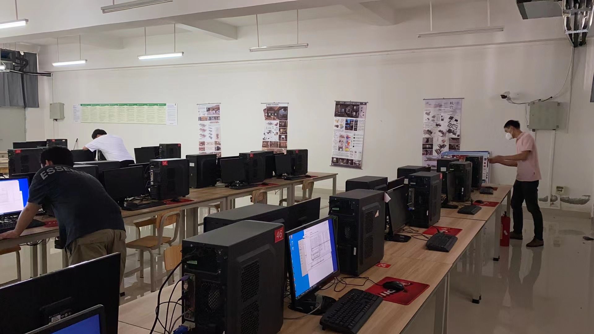 2022年9月初,设备与信息处的老师们为了在开学前做好各项准备,开启了紧张忙碌的设备检修维护工作周。(黎添祥/摄)